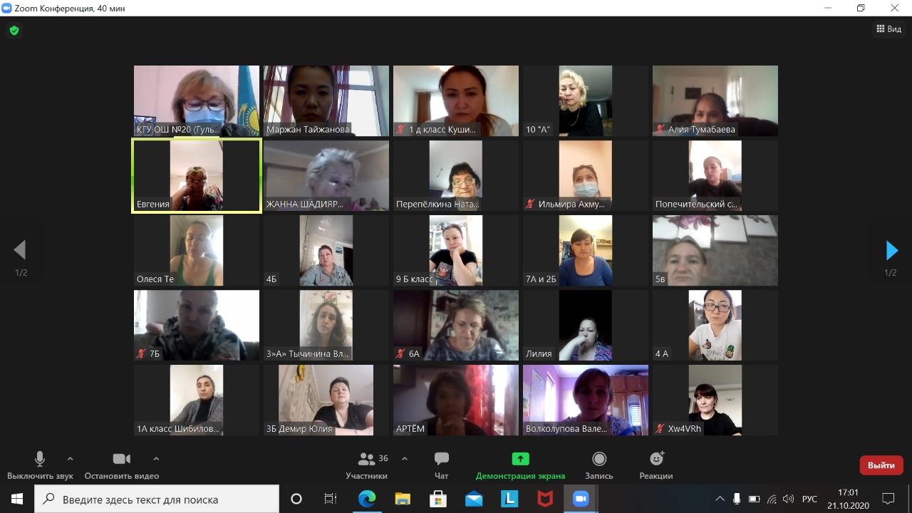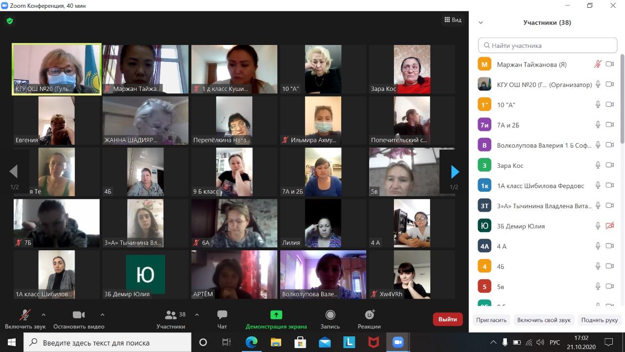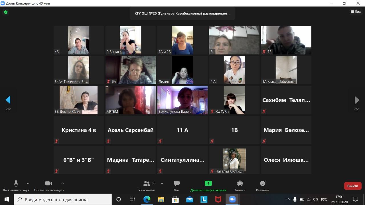 21 қазан күні 20 ЖББМ директоры Г.Қ.Нұрмағамбетова мектептің ата-аналары мен қамқоршылық кеңесінің алдында есеп беру кездесуін өткізді. Мектепті ұстауға бюджеттен бөлінген қаржының жұмсалуы туралы есеп директордың баяндамасында айтылды.