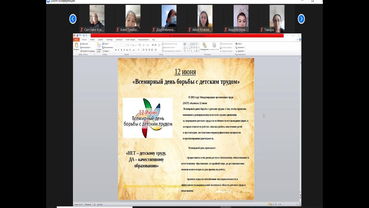 02 маусым 2021 0 1 2 3 4 5 Информация по КГУ ОШ №20 Семинар для родителей "Защита прав детей" в рамках Национальной кампании "12 дней борьбы против эксплуатации детского труда".