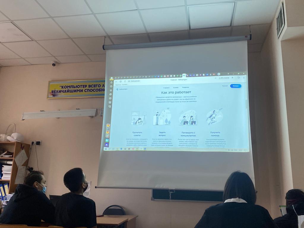 Қазақстан Республикасы Білім және ғылым министрлігі Балалардың құқықтарын қорғау комитеті кәмелетке толмағандардың құқықтарының бұзылуын, зорлық-зомбылық немесе қатыгездік көрсету фактілерін, сондай-ақ мұғалімдердің әдепсіз мінез-құлық фактілері туралы хабарламаларды жедел анықтау мақсатында Telegram мессенджерінде BALA QORǴAÝ чат арнасын құрды. Мектебімізде балалармен әңгімелесу өткізілді, оның барысында жоба туралы түсіндірілді, олар балаларға көмек қажет болғанда, психологиялық, этикалық, отбасылық мәселелерге тап болғанда немесе құқықтары бұзылғанда, сондай-ақ мектеп оқушылары қайда жүгіне алады. кеңес алыңыз және олардың көмегімен қиын жағдайдан шығудың жолын табыңыз