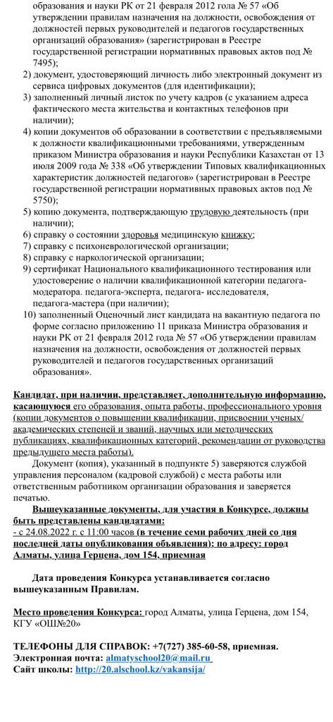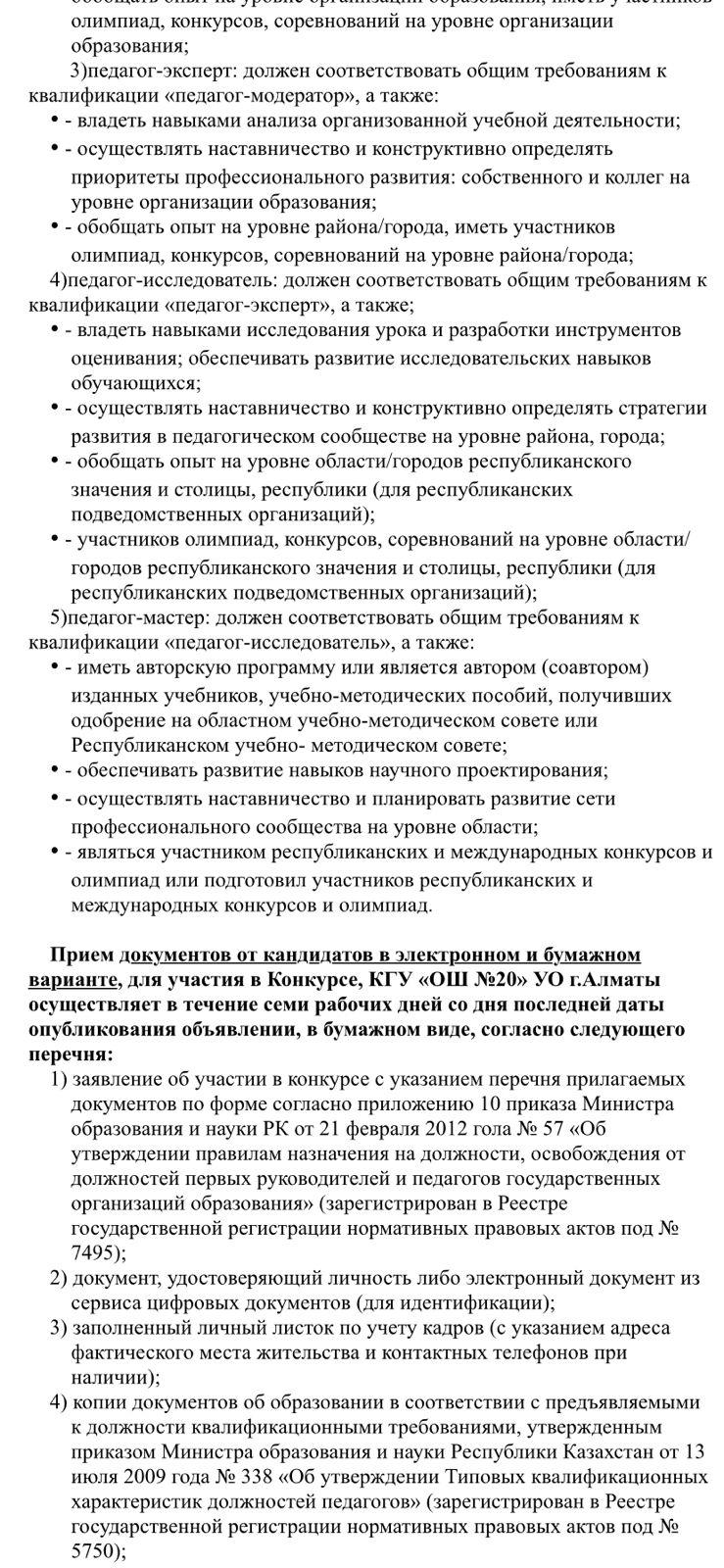 » » КГУ "ОШ №20" объявляет Конкурс на занятие вакантных должностей педагогов-предметников
