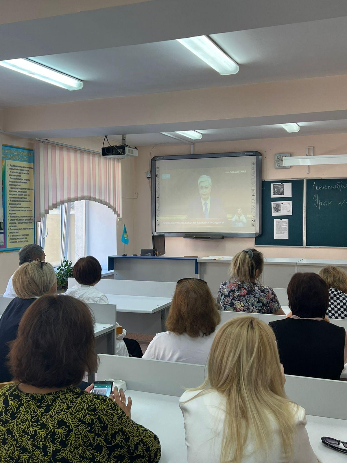 01 қыркүйек 2022 0 1 2 3 4 5 № 20 жалпы білім беретін мектептің ұжымы Мемлекет басшысы Қасым-Жомарт Тоқаевтың Қазақстан халқына Жолдауын тамашалады. Педагогический коллектив общеобразовательной школы №20 посмотрела Послание Главы государства Касым-Жомарта Токаева народу Казахстана.