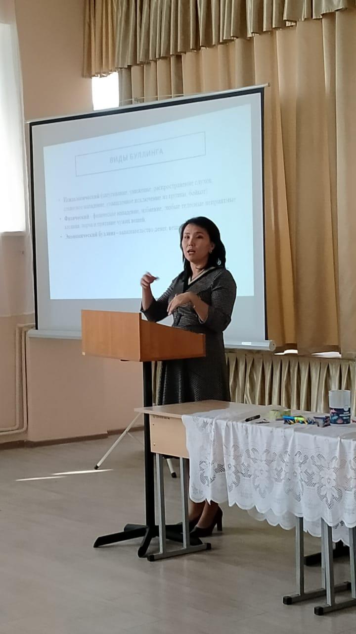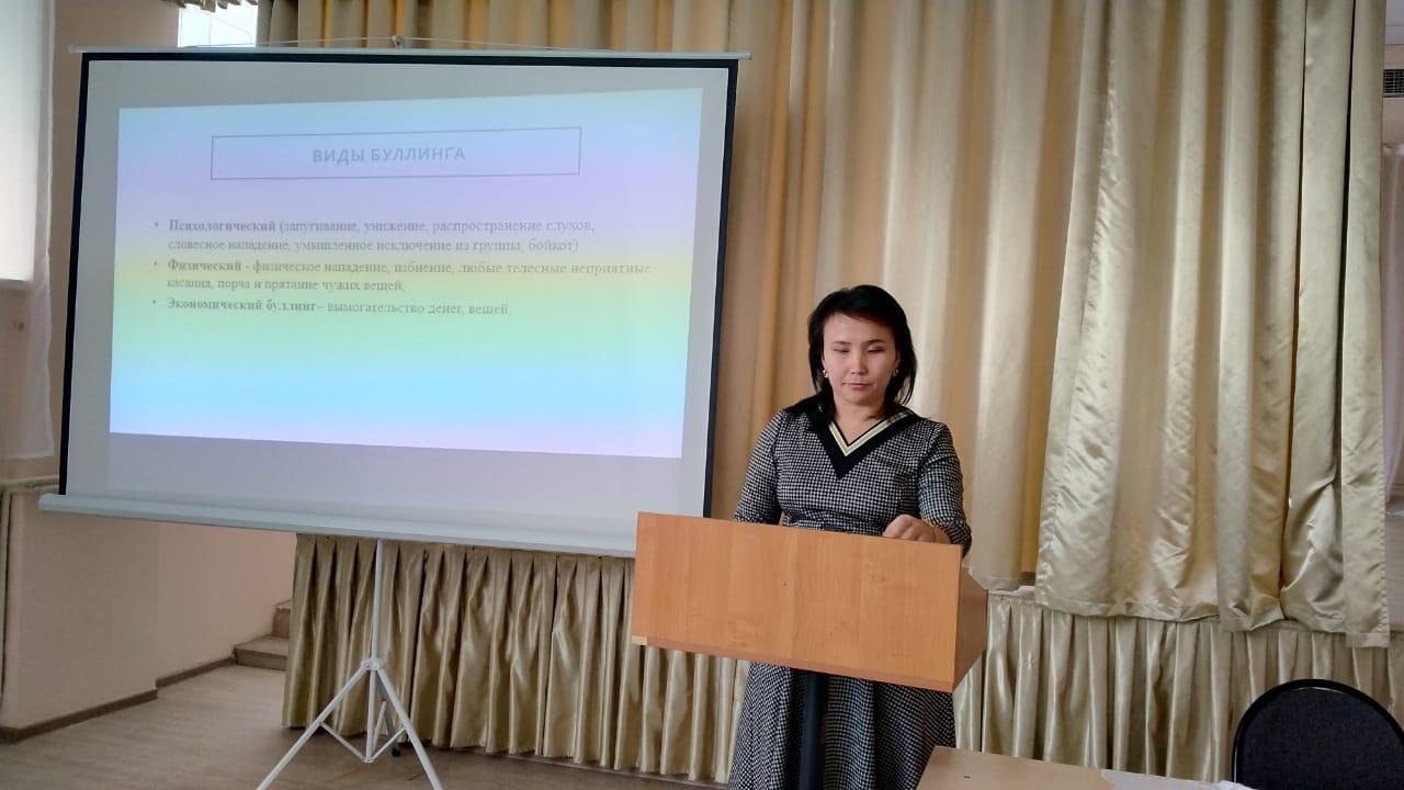 Буллингтің алдын алу және оған жол бермеу мақсатында директордың тәрбие ісі жөніндегі орынбасары, психолог және әлеуметтік педагог "Буллинг және оны шешу жолдары" тақырыбында әңгімелесті