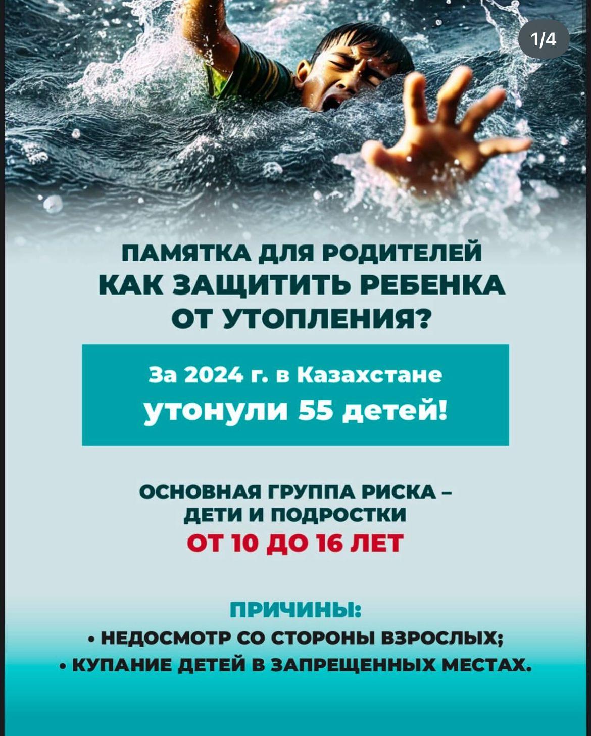 11 сәуір 2025 0 1 2 3 4 5 Ата-аналарға арналған жадынама: "Баланы суға батып кетуден қалай қорғауға болады" / Памятка для родителей: "Как защитить ребенка от утопления"