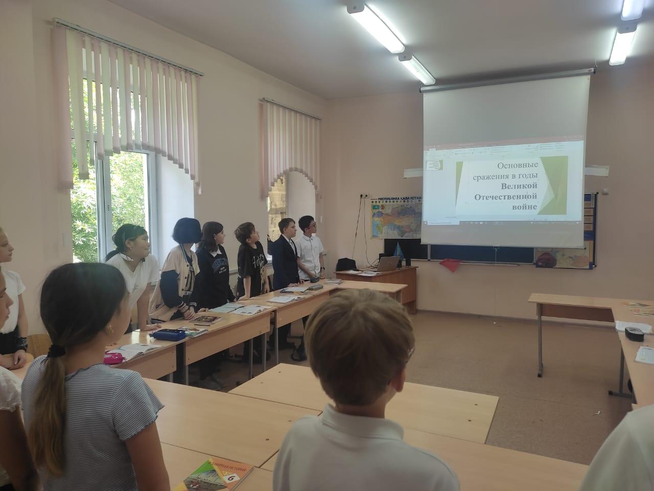 КГУ "Общеобразовательная школа №20" » Іс-шаралар » В канун празднования дня Победы, в нашей школе учитель истории Нұрсұлтан Мухтарович провел круглый стол "Основные сражения в годы Великой Отечественной войне", в котором приняли участие ученики 6- х классов