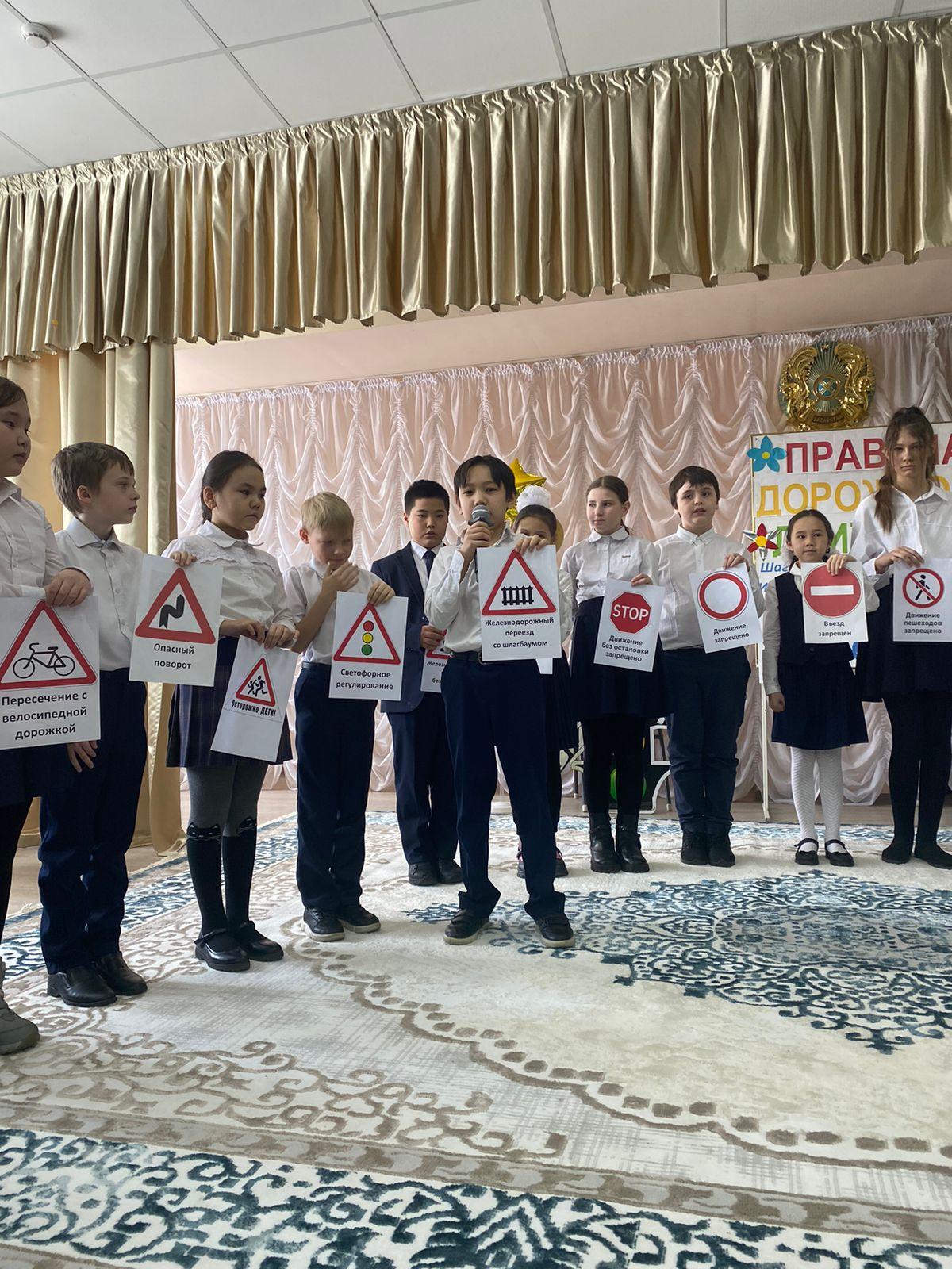 4 Б сынып оқушылары сынып жетекші Гульжахрам Шахимардановнамен жол-көлік жарақаттануының алдын алуға бағытталған іс-шара өтті. Іс-шараның негізгі мақсаты: балалардың жол қозғалысы ережелері мен жол белгілері туралы түсініктерін қалыптастыру.