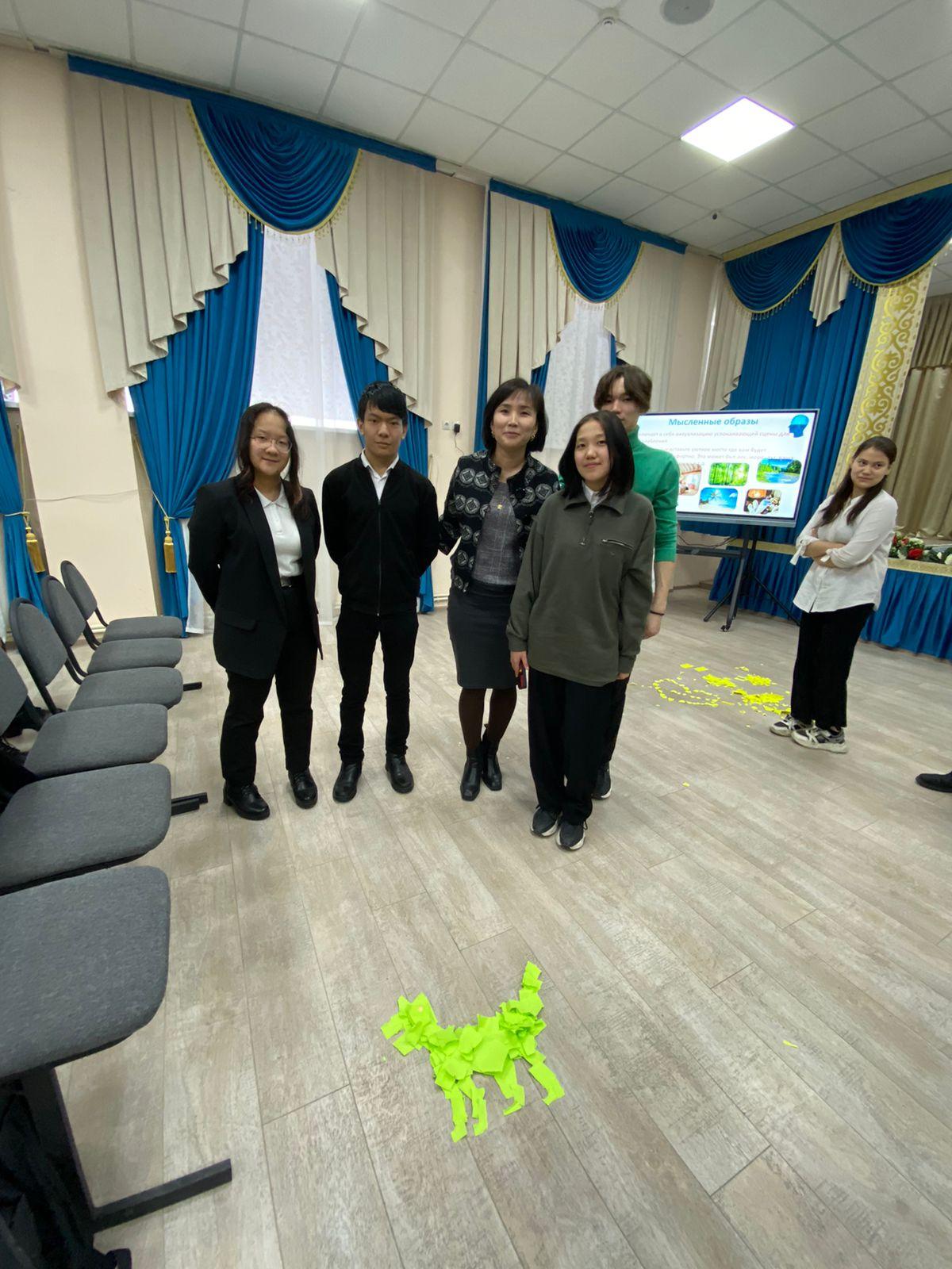 Психолог школы Момбекова Р. С. провела тренинг со старшеклассниками "Хорошее настроение", "Я доволен собой". Ребята приняли активное участие и поделились своими мыслями. Тренинг очень понравился учащимся.