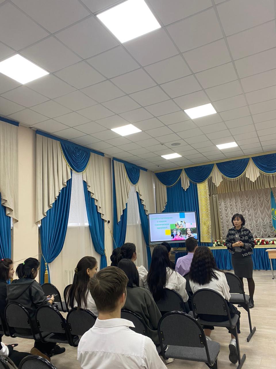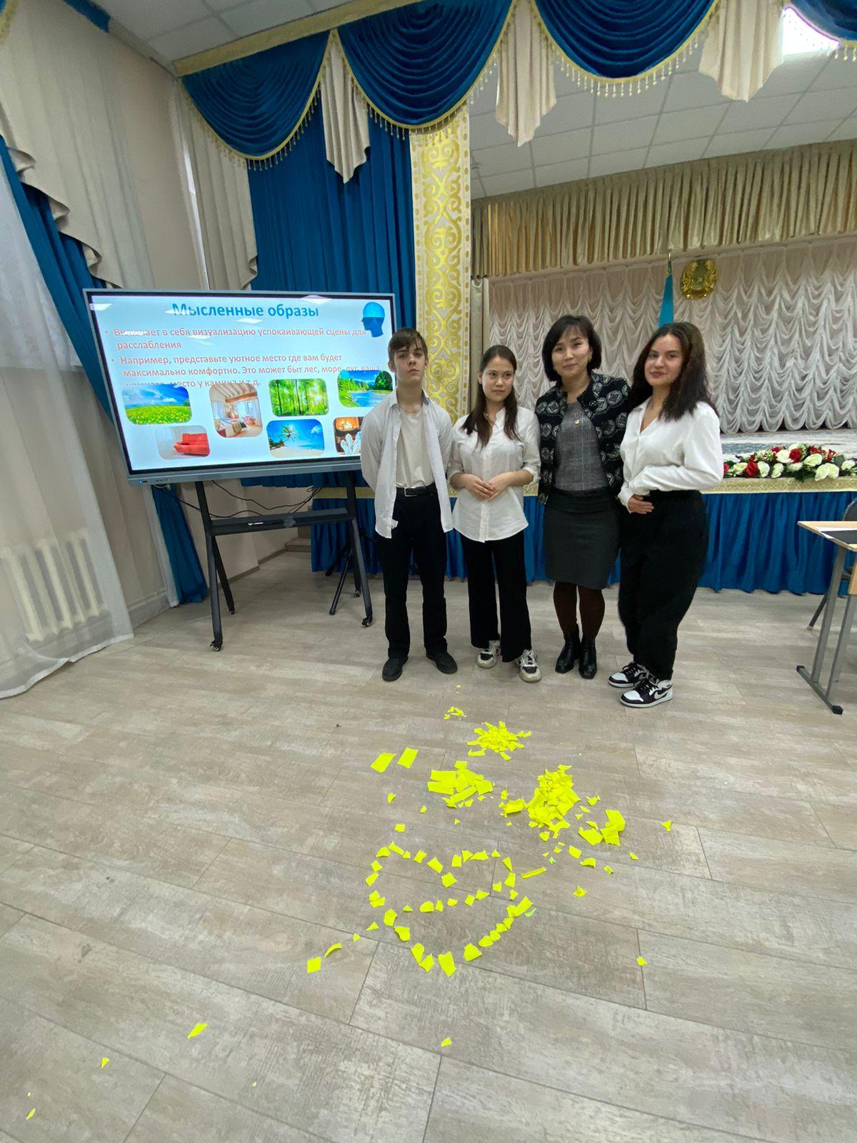 Мектеп психологі Момбекова Р.С. жоғары сынып оқушыларымен "Жақсы көңіл күй", "Мен өзіме көңілім толады" атты тренинг өткізді. Балалар белсенді қатысты және өз ойларымен бөлісті. Тренинг оқушыларға өте қатты ұнады.