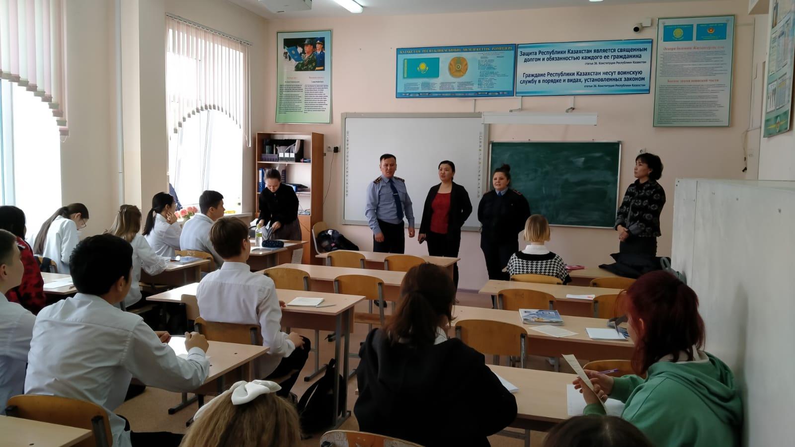 Мектеп оқушылар арасында құқық бұзушылықты және буллингті алдын алу мақсатында мектеп әкімшілігі, мектеп психологы және полиция инспекторы оқушылармен профилактикалық әңгімелесу өткізді.