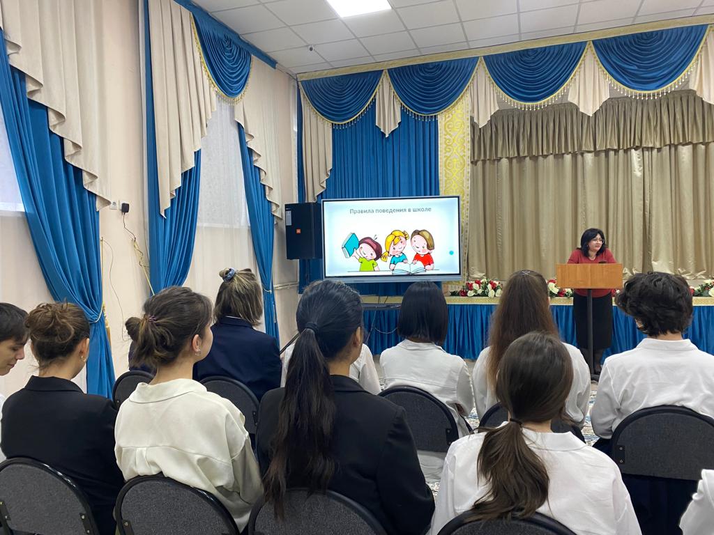 9 А сынып жетекшісі Тонченко В.А. "мектептегі мінез-құлық ережелері"тақырыбында сынып сағатын өткізді. Мақсаты: балалардың мектептегі мәдени мінез-құлық ережелері туралы білімдерін бекіту.