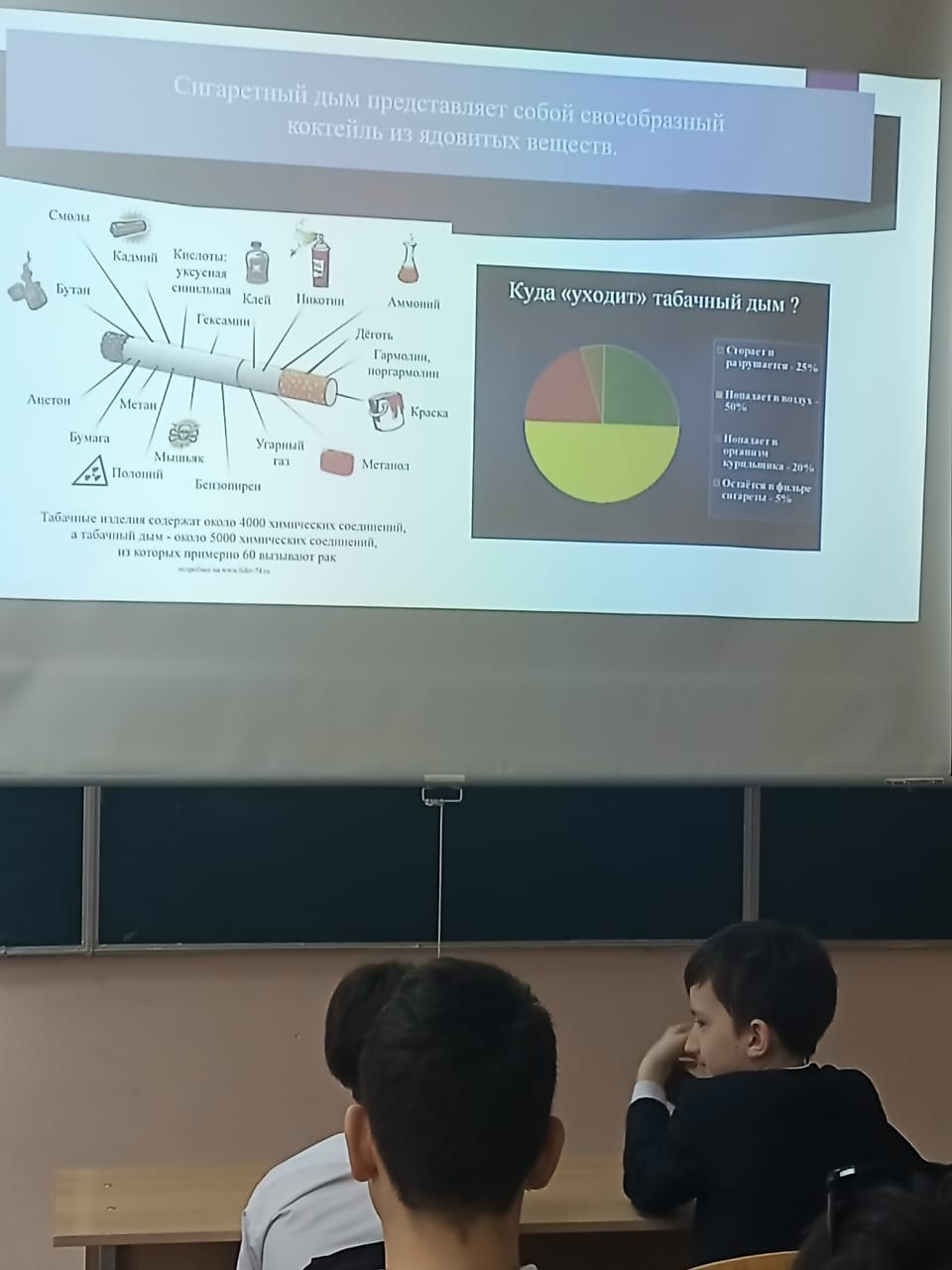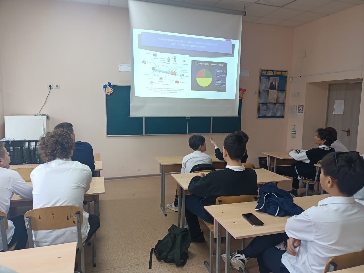 КГУ "Общеобразовательная школа №20" » Іс-шаралар » 8-11 сынып жетекшілері "темекі шегу және алкоголь - еркіндік немесе тәуелділік" тақырыбында сынып сағатын өткізді. Сабақтың мақсаты: оқушылардың салауатты өмір салтына деген қажеттілігін, жаман әдеттерге теріс көзқарасын қалыптастыру.