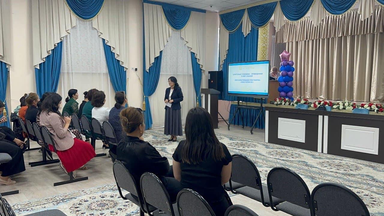 На мероприятии была представлена инновационная образовательная платформа «Oqulyqtar.kz» c цифровыми учебниками.