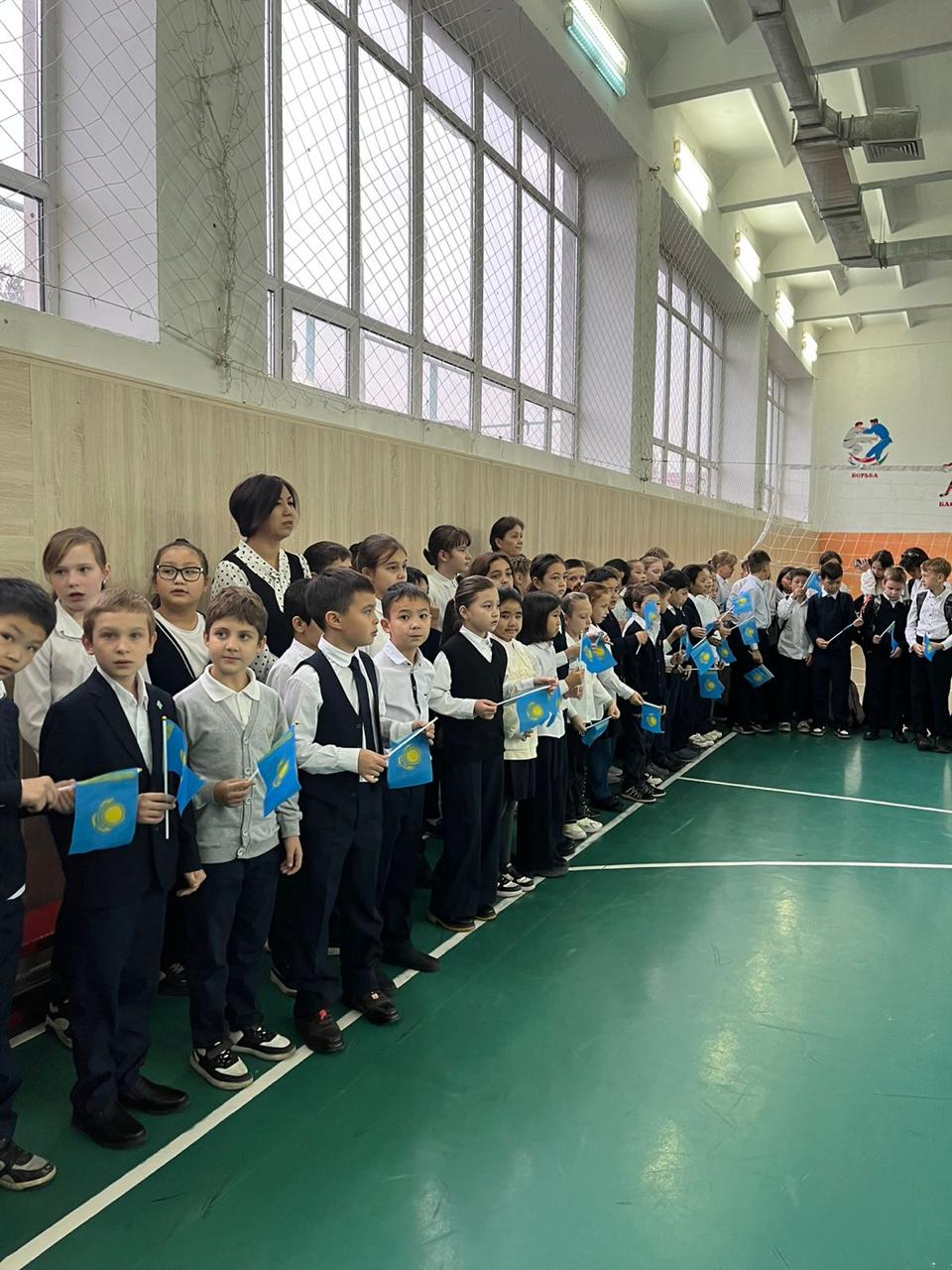 “Тоғыз айға 9 іс-шара” тұжырымдамасы аясында оқушыларда патриотизм мен азаматтық сезімді қалыптастыруға ықпал ету мақсатында Мемлекеттік Гимн орындалды.