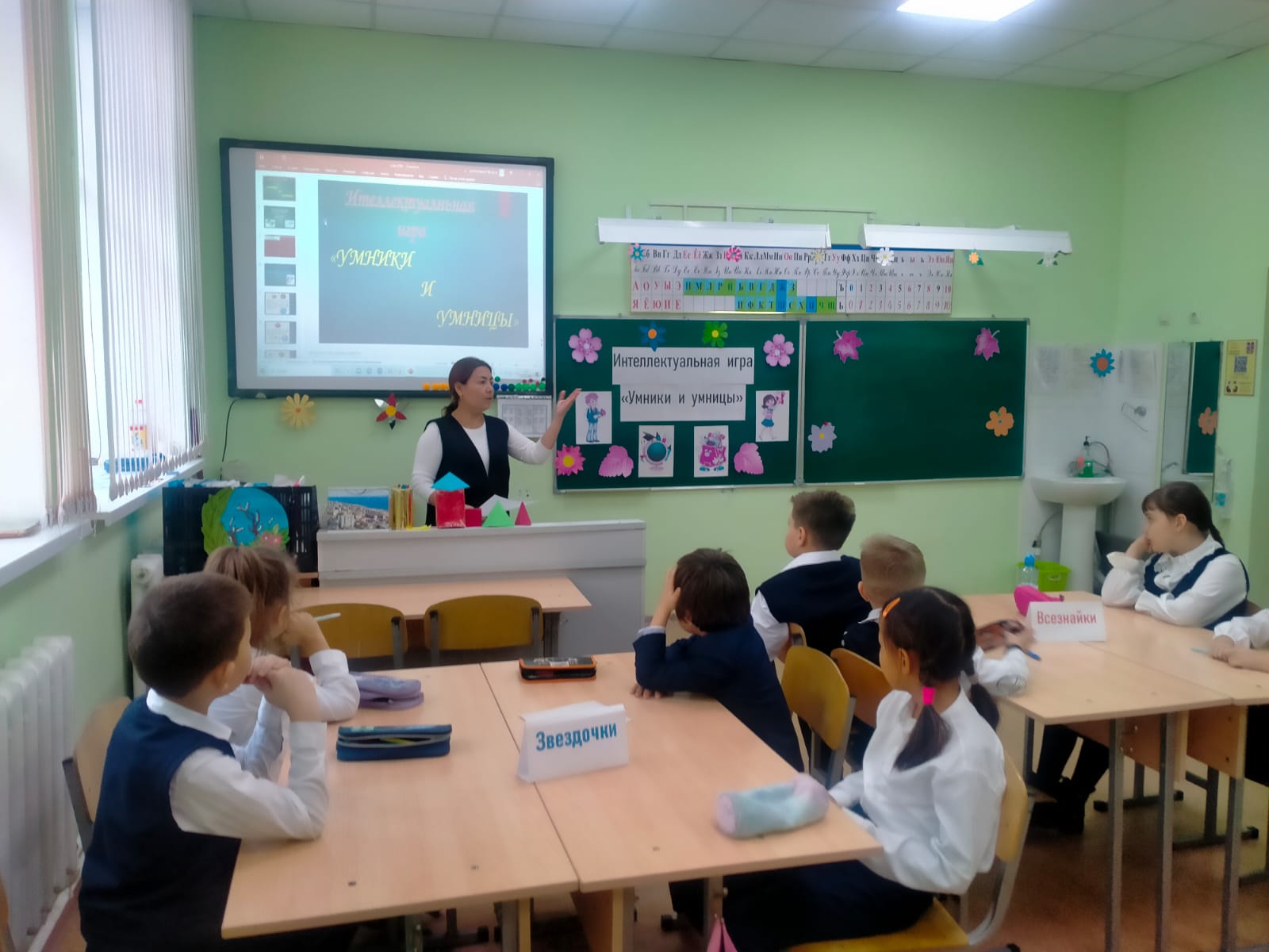 Бастауыш онкүндігі аясында болып өткен 2 сынып арасында "ақылдылар" интеллектуалды ойыны / Интеллектуальная игра "Умники и умницы" среди 2 классов прошедшая в рамках декады начальных классов