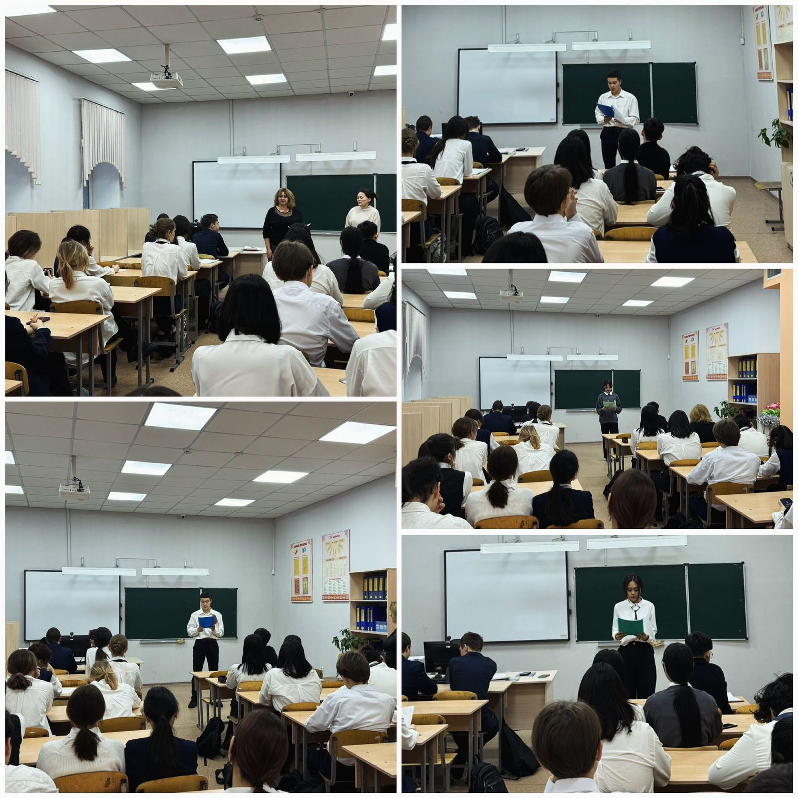 "Біртұтас тәрбие" жоспары аясында орыс тілі мұғалімі Тонченко В. А. мен қазақ тілі мұғалімі Рзаханова Ж.С. " Туған өлке ақындарының шығармаларын дәріптеу ("Жеткіншектің Жеті жарғысы" жобасын іске асыру)" тақырыбында сыныптан тыс сабақ ұйымдастырды.