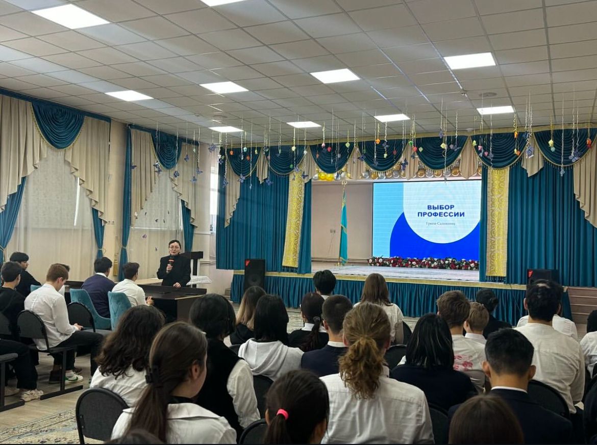 мамандық таңдау… Алматы каласының «Еңбек ұтқырлығы орталығымен « бірлесіп мектепте жоғары сынып оқушылары арасында кәсіптік бағдар беру жұмысы жүргізілді. Маман Е.С. Жакупованың тұсаукесері ұсынылды, ол мамандықты қалай дұрыс таңдау керектігі және кәсіптік бағдарлау бойынша қандай сынақтардан өту керектігі, түлектерге көмек ретінде «енбек kz» сайтында қандай платформалар бар екендігі туралы ұсыныстар берді. Ақпарат түлекке болашақ мамандықты анықтауға және еңбек нарығында сұранысқа ие мамандық таңдауға көмектеседі.