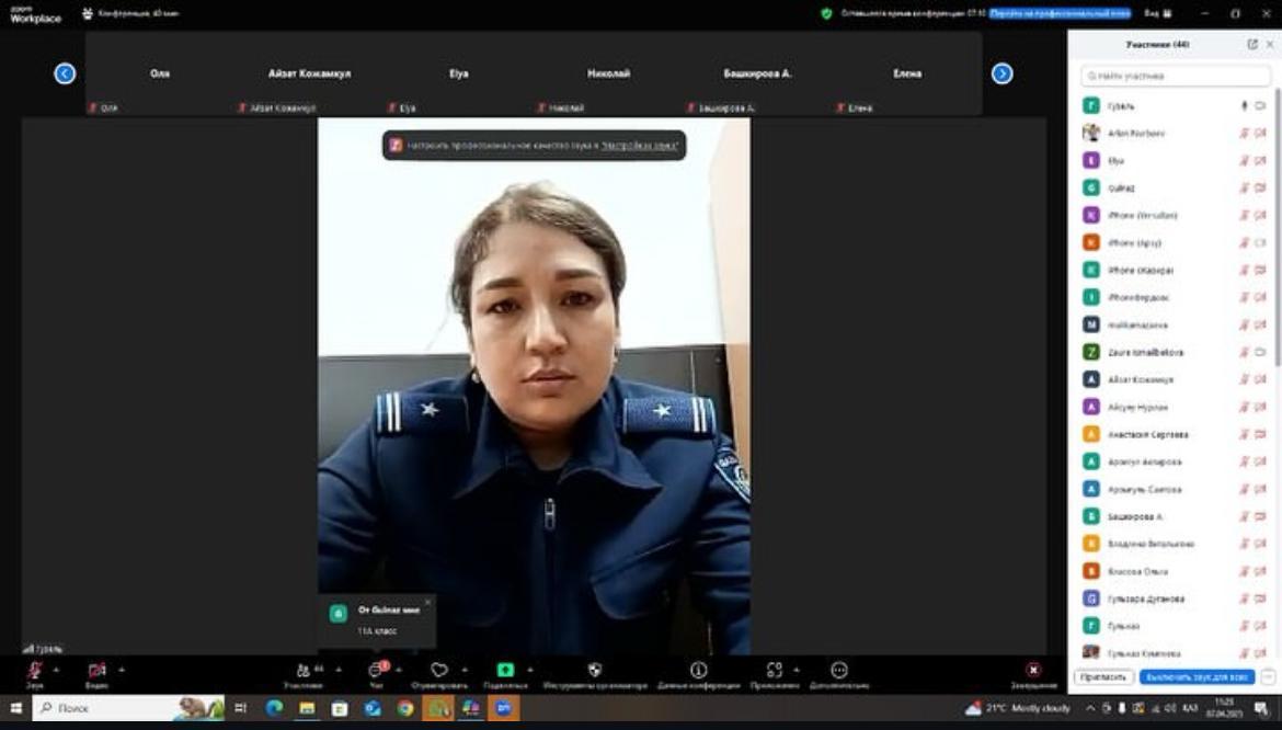 Сегодня прокурор Турксибского района Сәкен Ерсұлтан и старший участковый инспектор по делам несовершеннолетних отделения ювенальной полиции отдела местной полицейской службы Управления полиции Турксибского района майор полиции Мусаева Гузеля Исрапуловна провели собрание в формате Zoom с родителями учащихся 7-11 классов на тему «Половая неприкосновенность, пагубное употребление ПАВ».