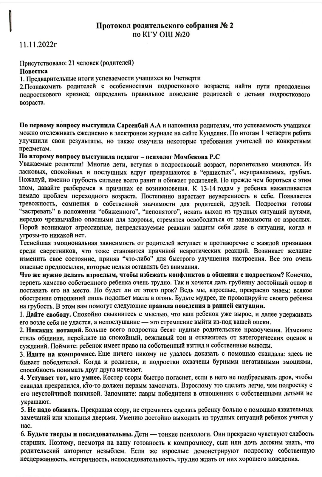 Жалпымектептік ата-аналар жиналысы / Общешкольное родительское собрание