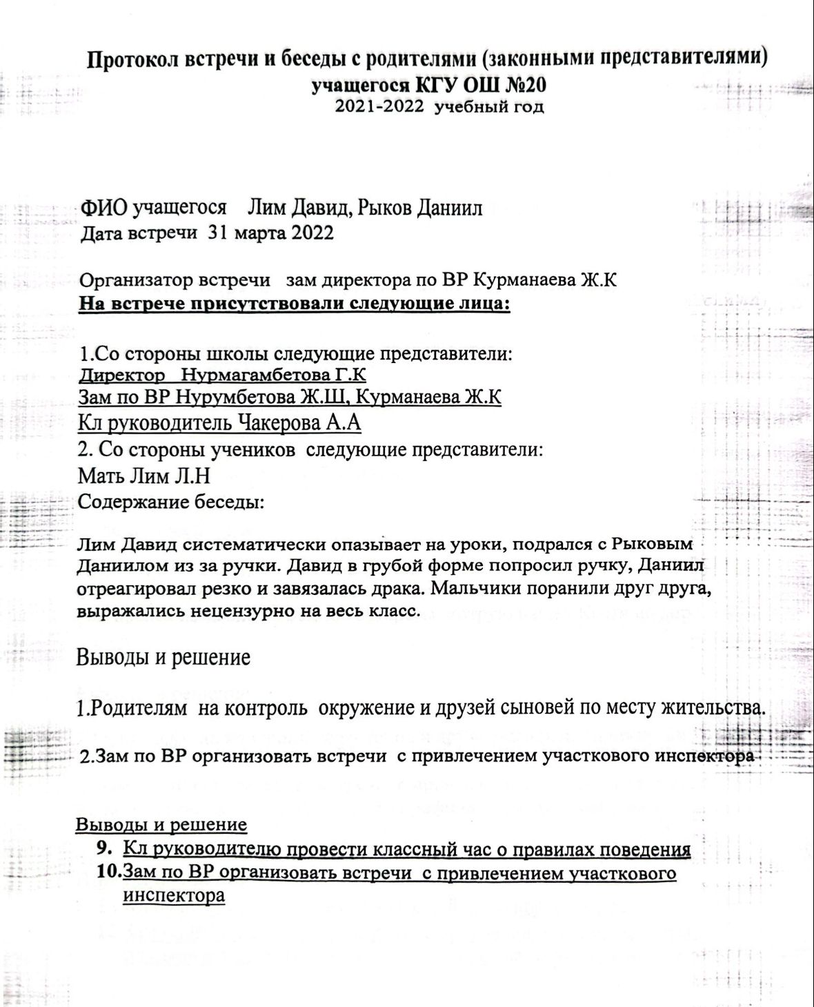 31 наурыз 2022 0 1 2 3 4 5 Ата-аналармен кездесу және әңгімелесу ХАТТАМАСЫ / Протокол встречи и беседы с родителями
