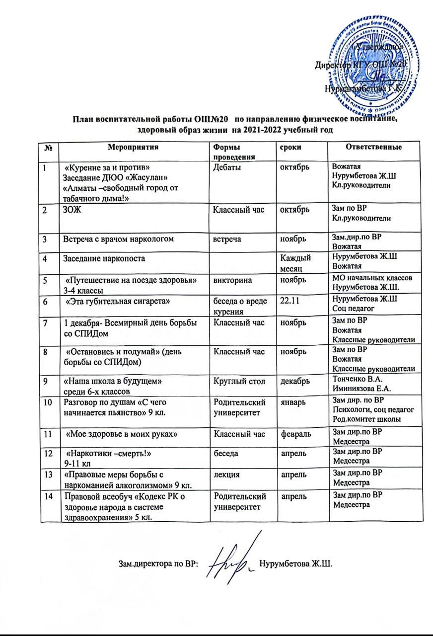 30 тамыз 2021 0 1 2 3 4 5 Дене тәрбиесі бойынша тәрбие жұмысының жоспары 2021-2022 оқу жылы / План воспитательной работы по физическому воспитанию 2021-2022 учебный год