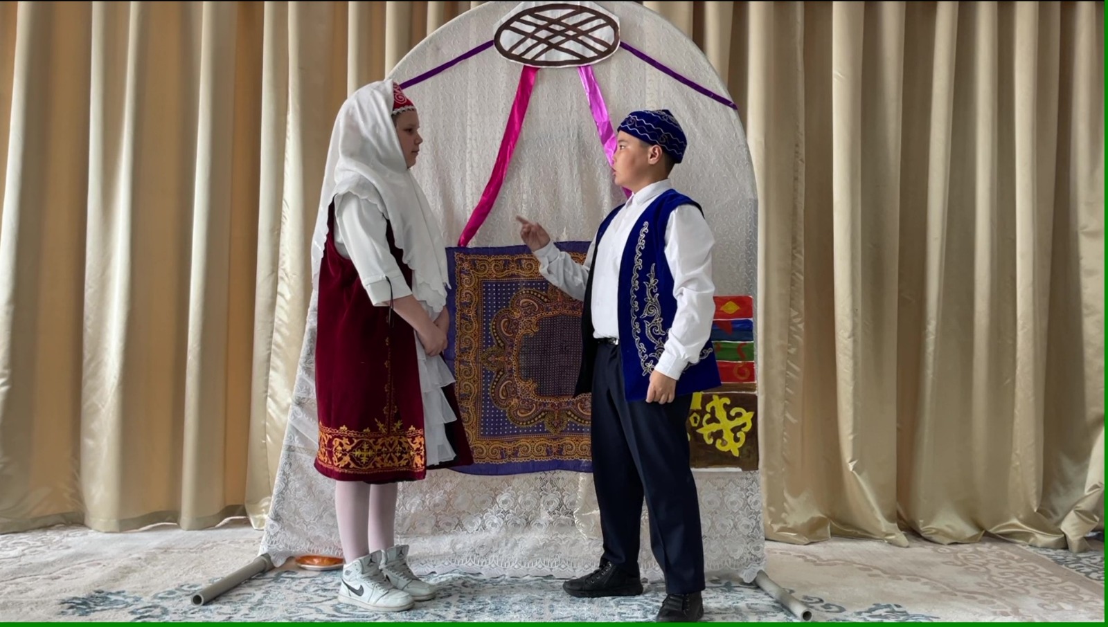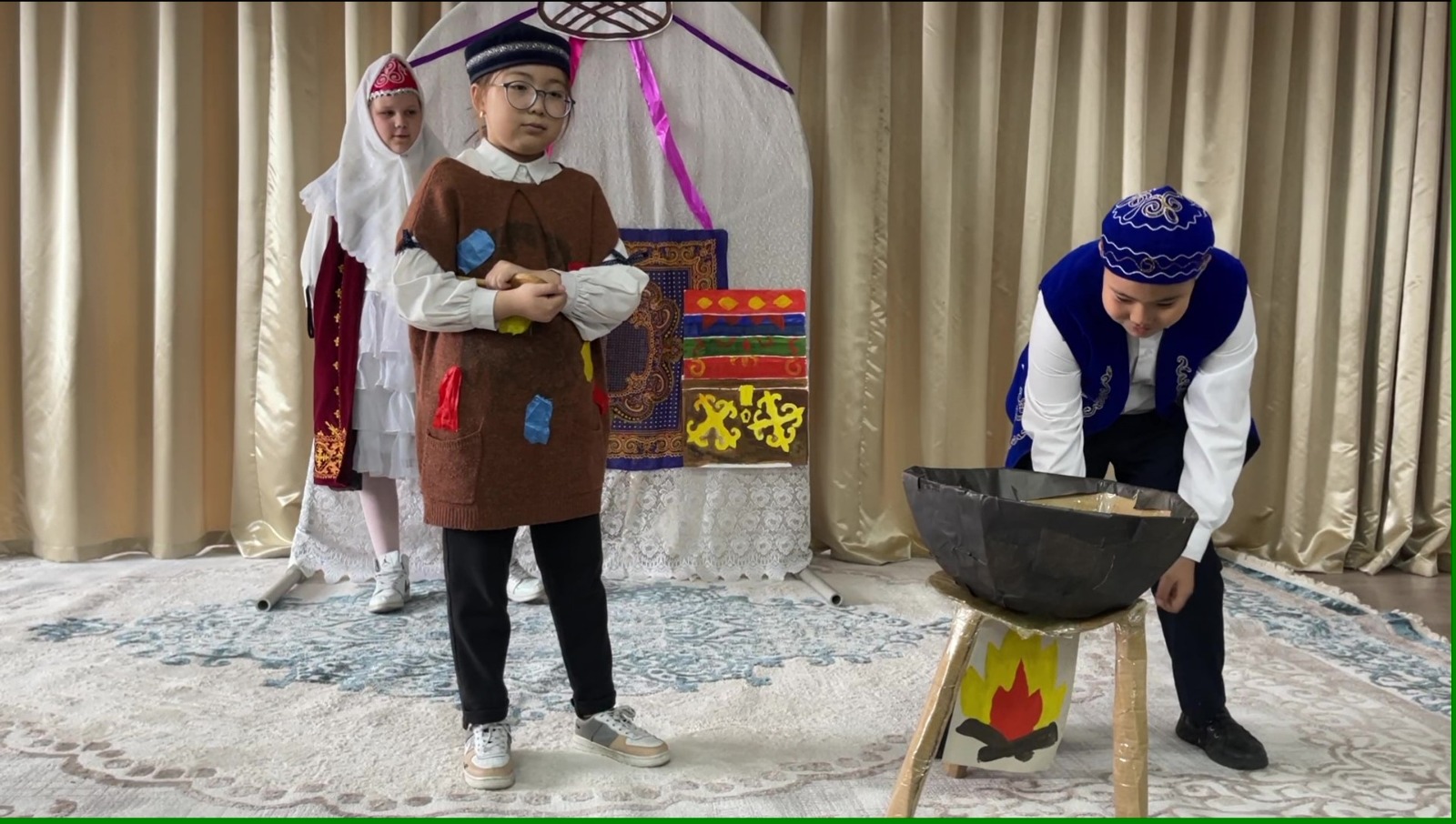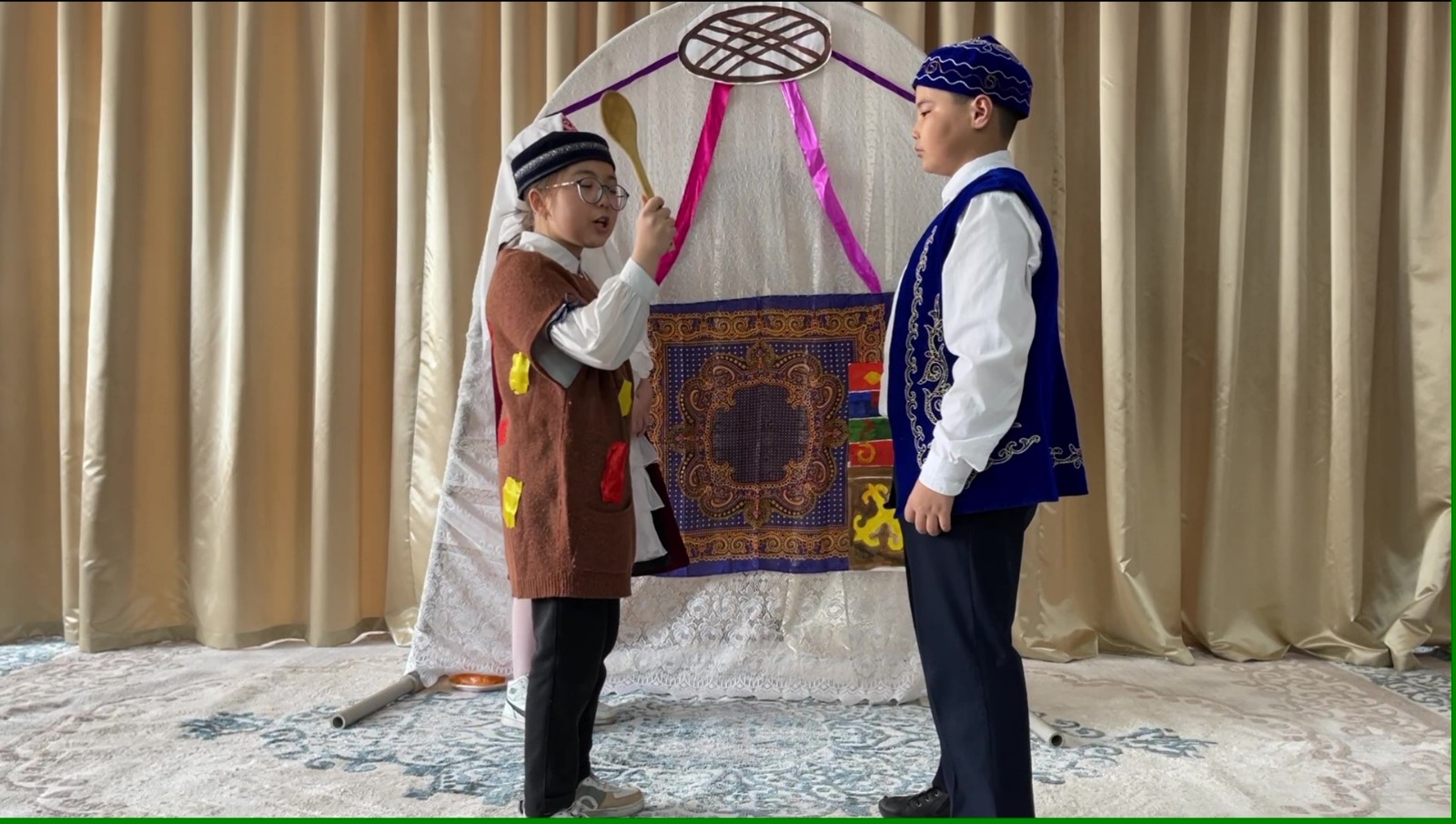 Конкурс «Кітап ө білім бұлағы» (литературное чтение), посвящённый Международному дню защиты детей. Через театральное искусство – к чтению. Сказка Алдар Косе и ложка Учащиеся 4Б класса Әкімбек Жулдыз, Тунгатар Арлан, Сташкова Полина, Умерова Екатерина.