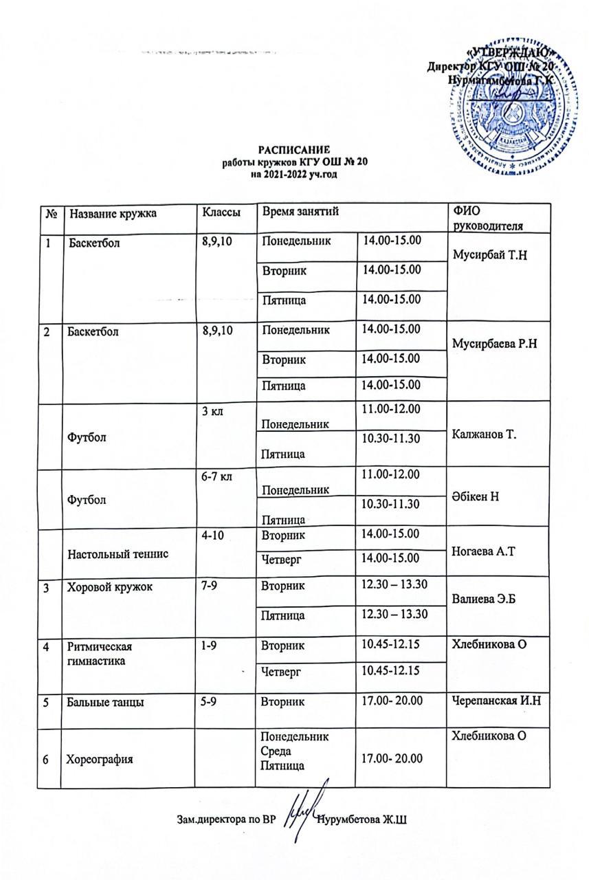 06 қыркүйек 2021 0 1 2 3 4 5 2021-2022 оқу жылына арналған үйірмелер мен секциялар кестесі / Расписание кружков и секции на 2021-2022 уч.год