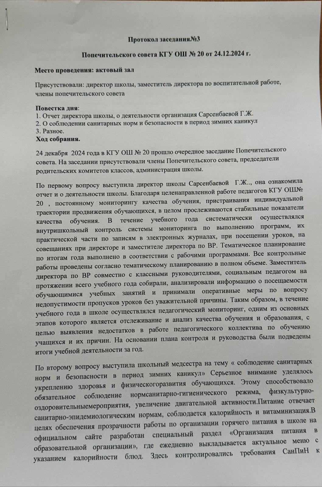 24 желтоқсан 2024 0 1 2 3 4 5 Қамқоршылық кеңес отырысының № 3 ХАТТАМАСЫ / Протокол №3 заседания Попечительского совета