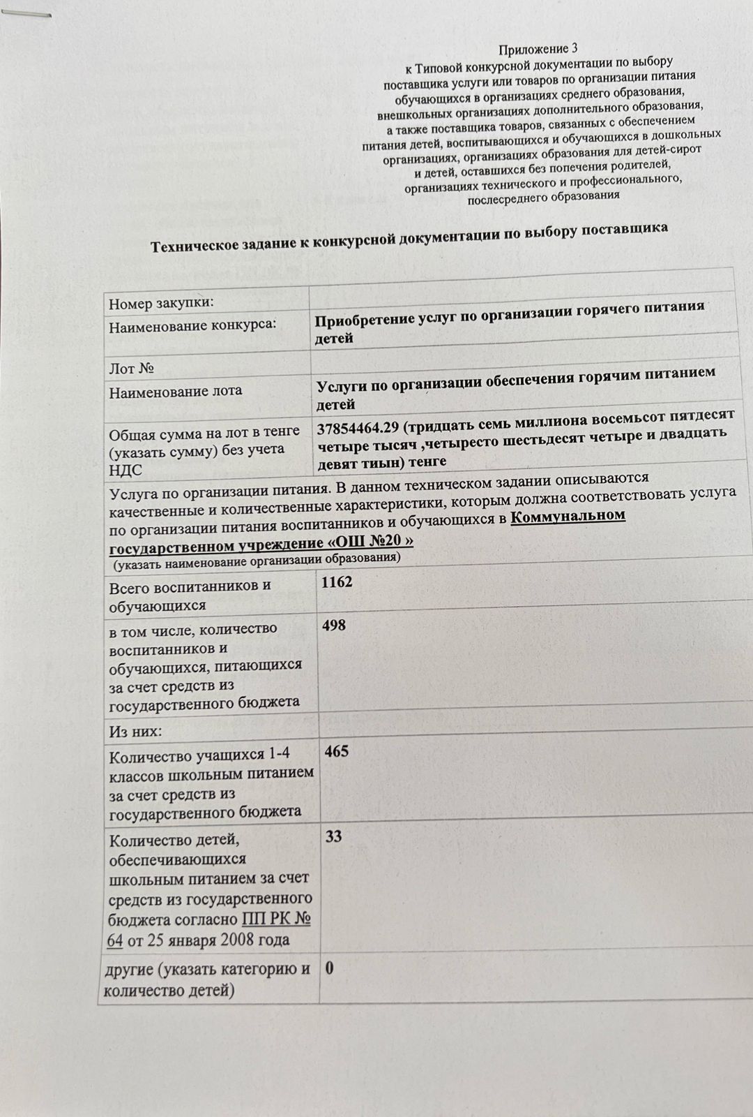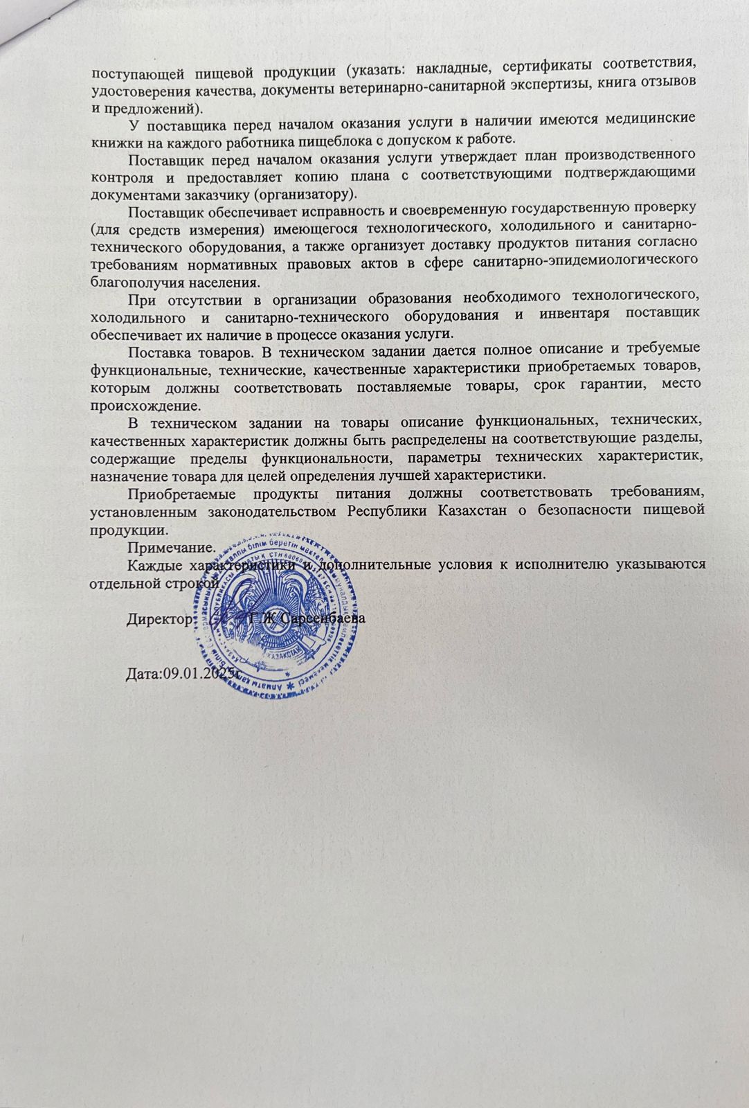 Конкурсная документация по питанию 2025