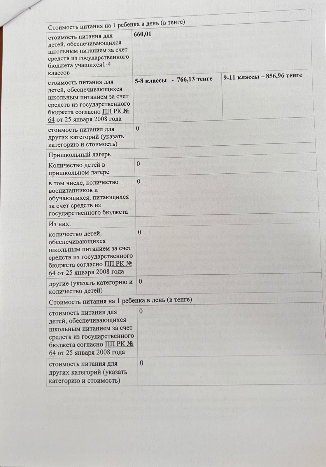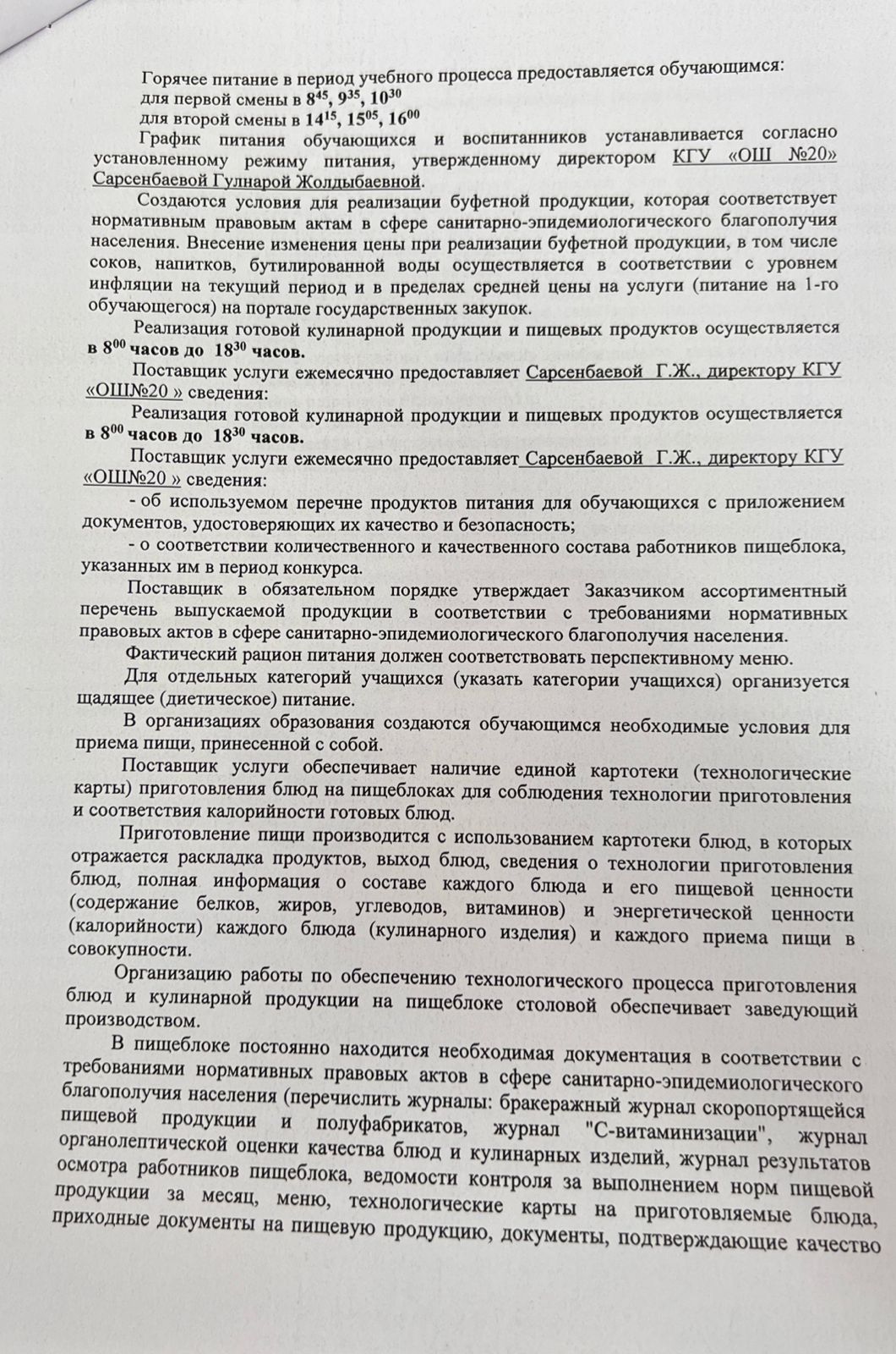 2025 жылдың қаңтар айындағы "№ 20 жалпы білім беретін" КММ-нің тамақтану сапасының мониторингі бойынша комиссия есебі. Отчет комиссии по мониторингу качества питания за январь месяц 2025 года по КГУ ОШ №20