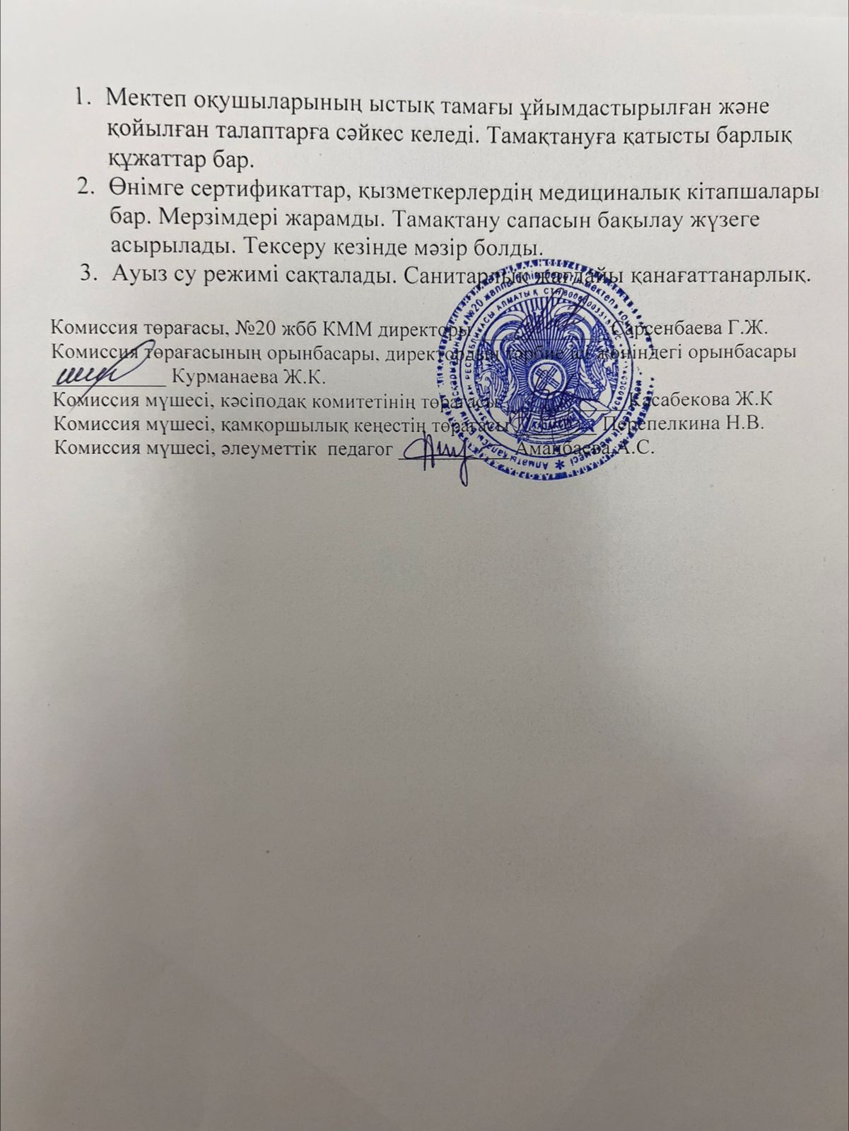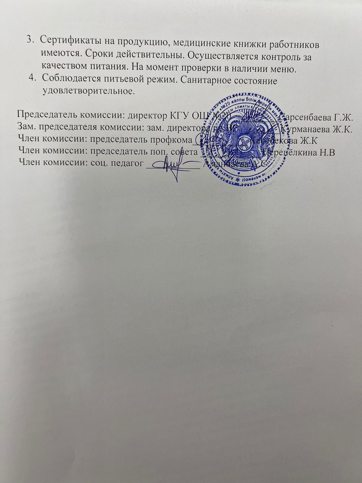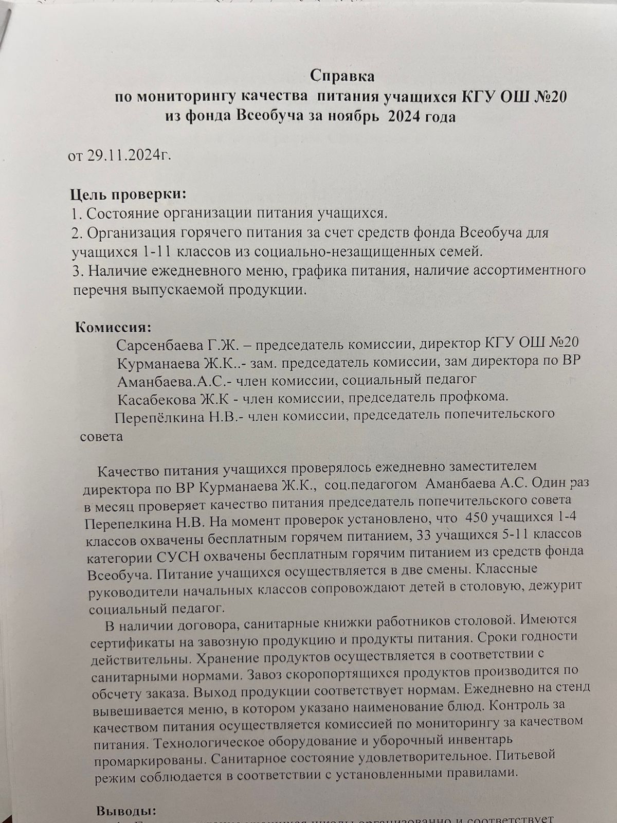 29 қараша 2024 0 1 2 3 4 5 2024 жылдың қараша айындағы "№ 20 жалпы білім беретін" КММ-нің тамақтану сапасының мониторингі бойынша комиссия есебі. Отчет комиссии по мониторингу качества питания за ноябрь месяц 2024 года по КГУ ОШ №20