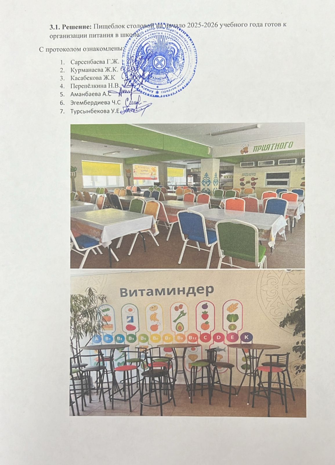 29 тамыз 2025 0 1 2 3 4 5 Тамақтануды ұйымдастыру және сапасын бақылау жөніндегі комиссия отырысының хаттамасы/Протокол заседания комиссии по контролю организацией и качеством питания