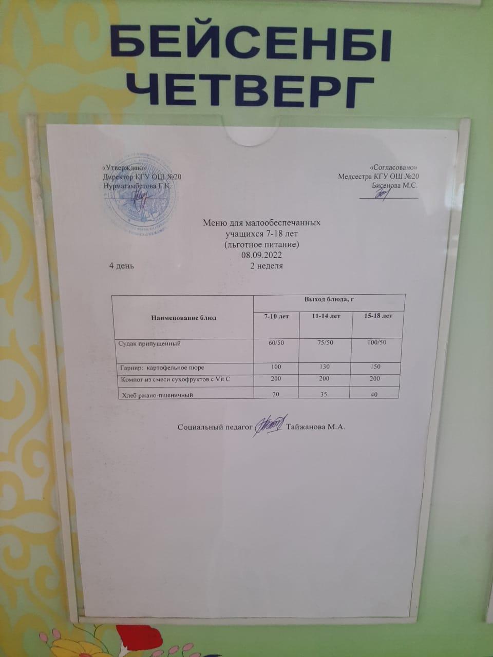 Тегін ас мәзірі 1-4. и СУСН 5-11.! Меню бесплатного питания 1-4кл. и СУСН 5-11кл.!