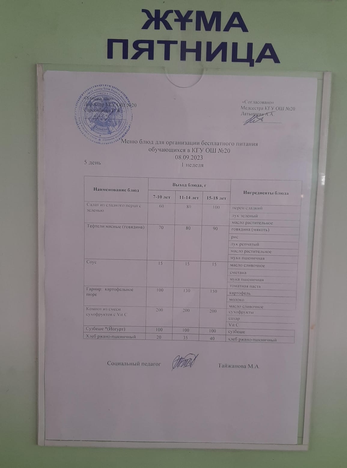 2023-2024 оқу жылы 1-4 сынып және СУСН 5-11 сыныптар мәзірі. Меню 1-4 класс, СУСН 5-11 класс 2023-2024 учебный год