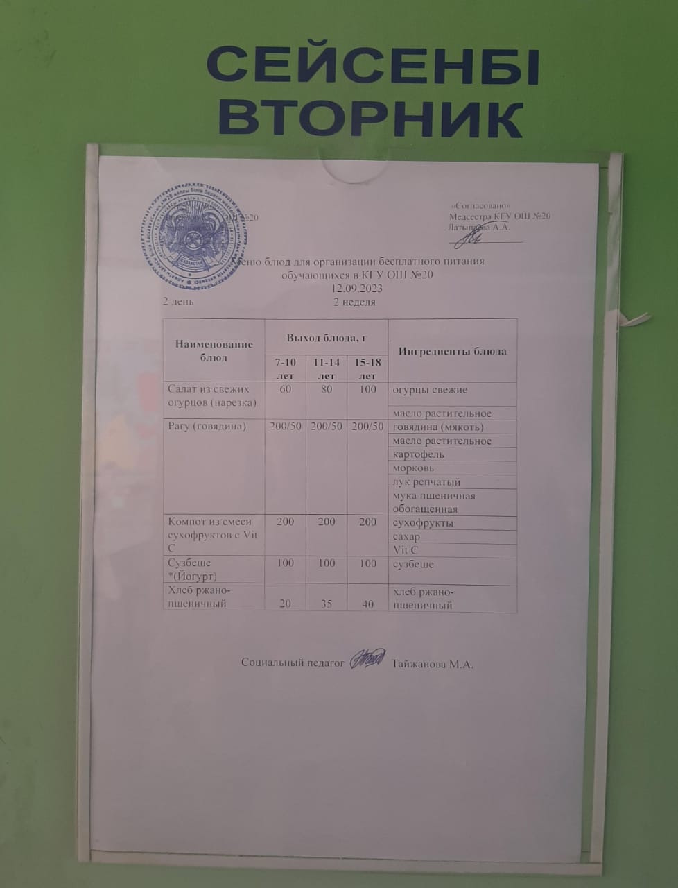 2023-2024 оқу жылы 1-4 сынып және СУСН 5-11 сыныптар мәзірі. Меню 1-4 класс, СУСН 5-11 класс 2023-2024 учебный год