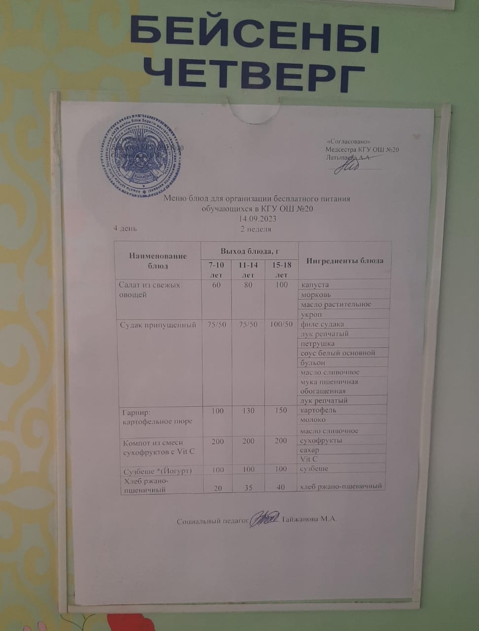 2023-2024 оқу жылы 1-4 сынып және СУСН 5-11 сыныптар мәзірі. Меню 1-4 класс, СУСН 5-11 класс 2023-2024 учебный год