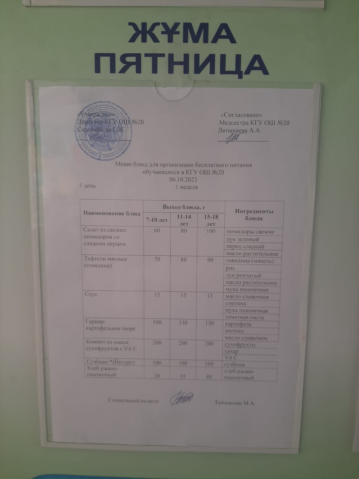 2023-2024 оқу жылы 1-4 сынып және СУСН 5-11 сыныптар мәзірі. Меню 1-4 класс, СУСН 5-11 класс 2023-2024 учебный год