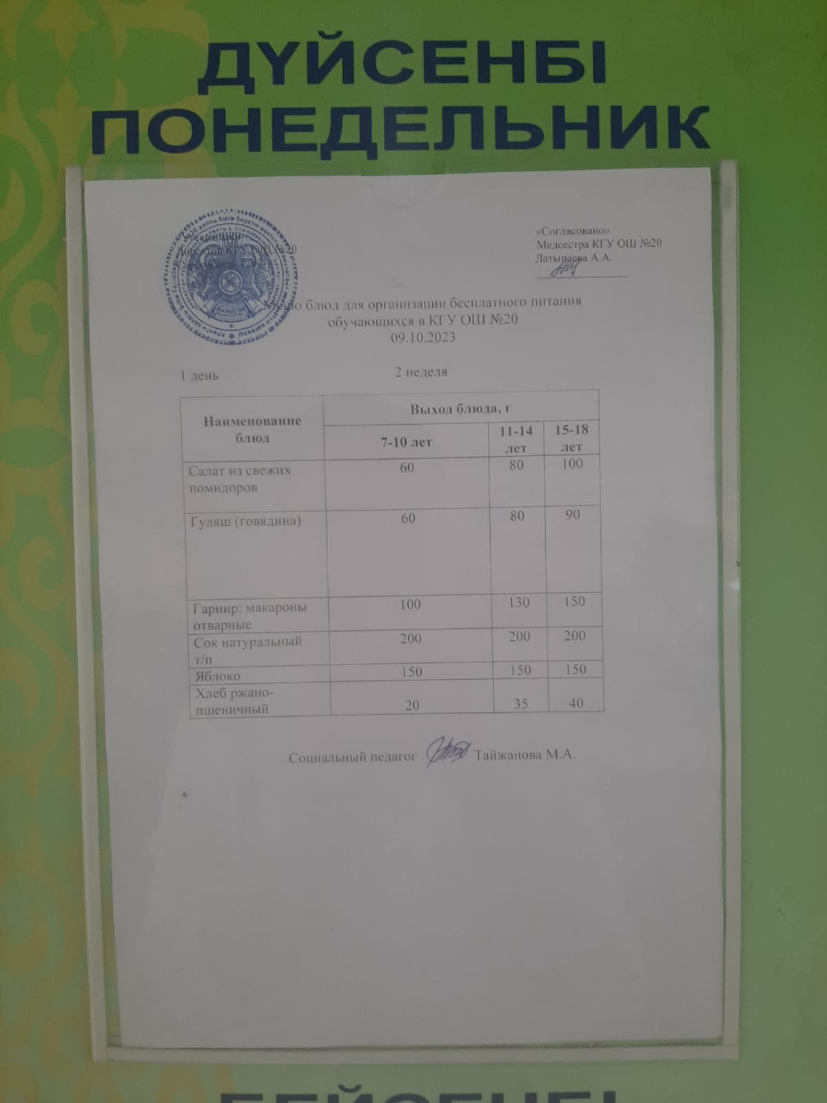 2023-2024 оқу жылы 1-4 сынып және СУСН 5-11 сыныптар мәзірі. Меню 1-4 класс, СУСН 5-11 класс 2023-2024 учебный год
