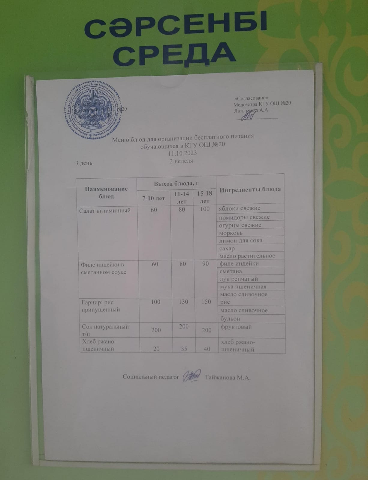 2023-2024 оқу жылы 1-4 сынып және СУСН 5-11 сыныптар мәзірі. Меню 1-4 класс, СУСН 5-11 класс 2023-2024 учебный год