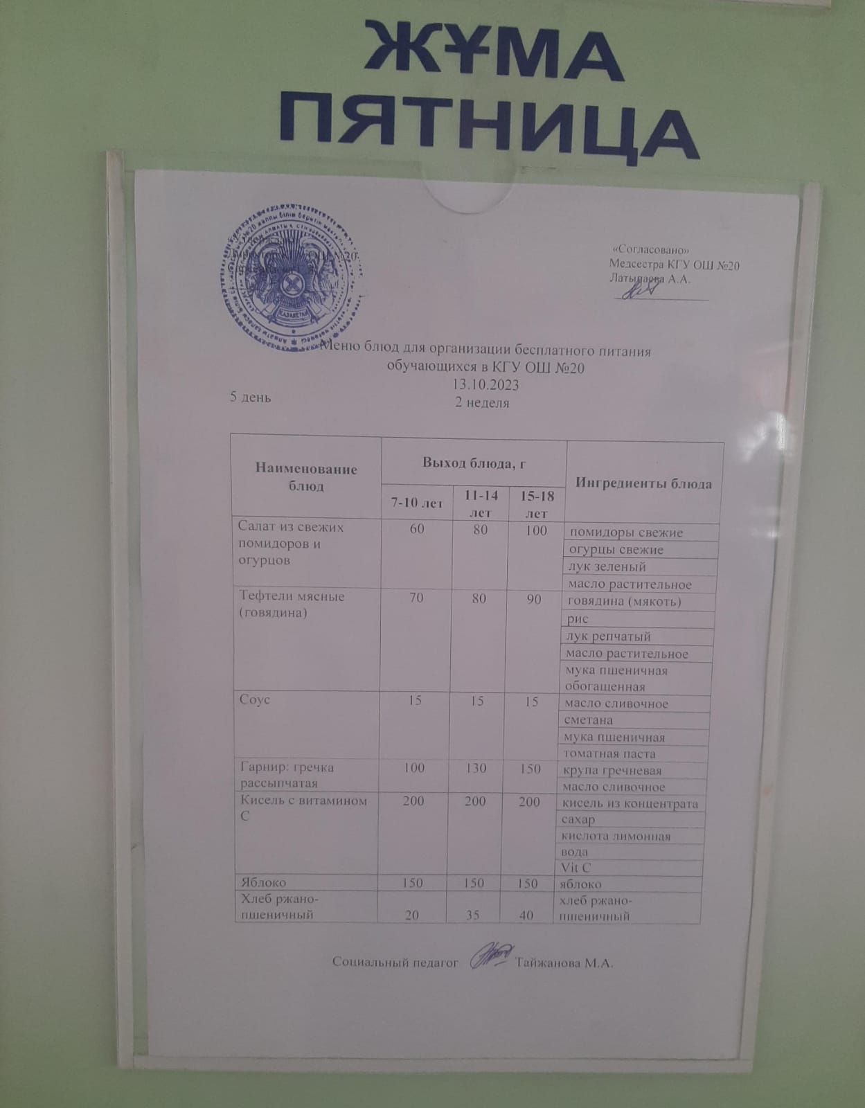 2023-2024 оқу жылы 1-4 сынып және СУСН 5-11 сыныптар мәзірі. Меню 1-4 класс, СУСН 5-11 класс 2023-2024 учебный год
