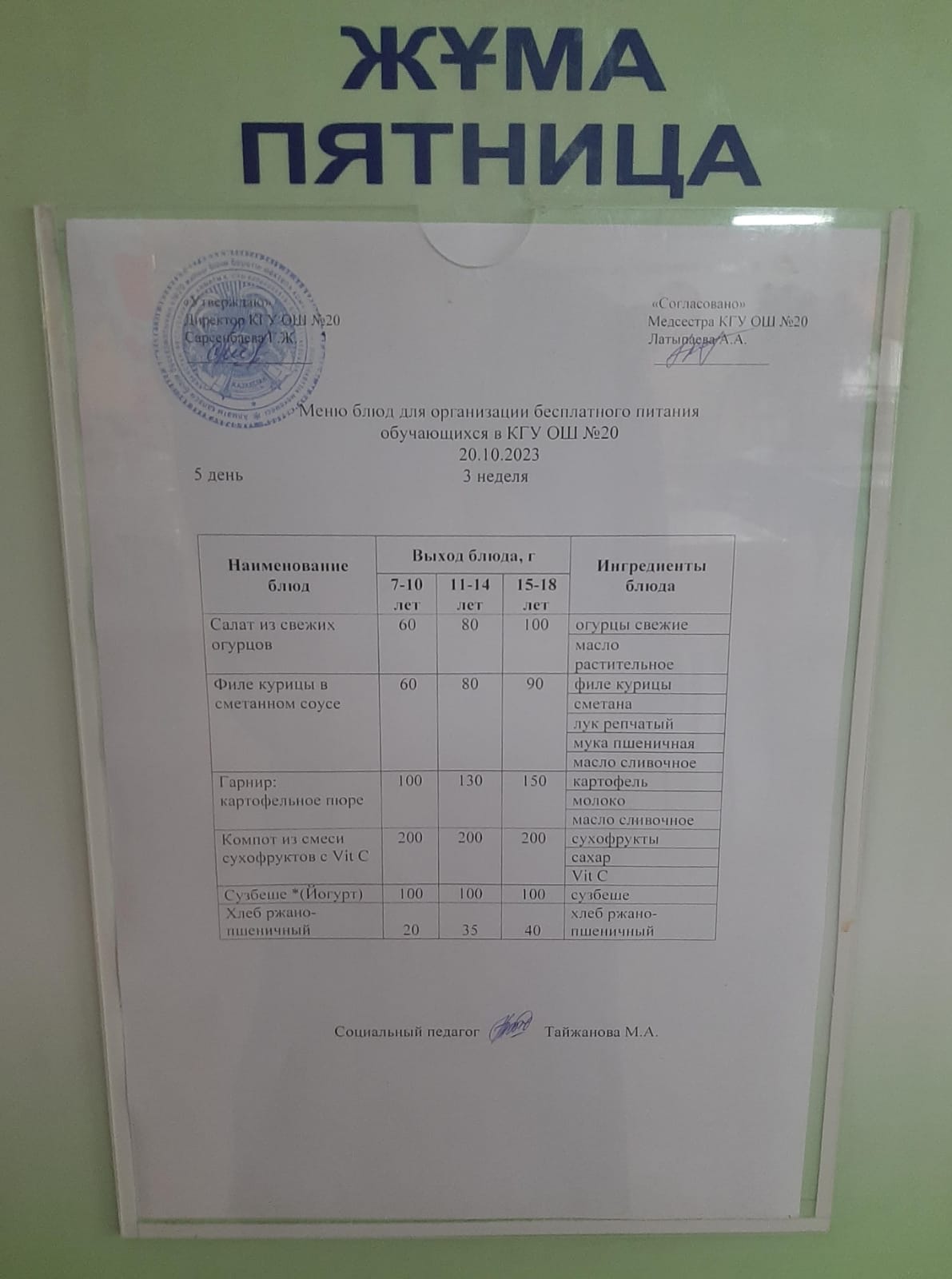 2023-2024 оқу жылы 1-4 сынып және СУСН 5-11 сыныптар мәзірі. Меню 1-4 класс, СУСН 5-11 класс 2023-2024 учебный год