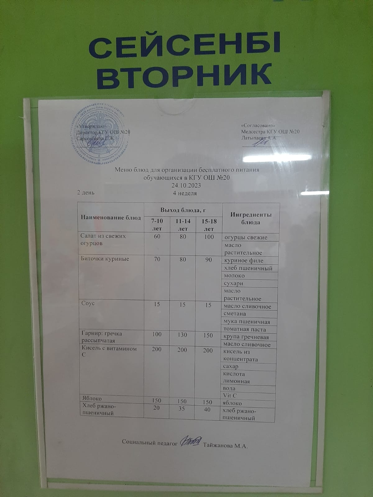 2023-2024 оқу жылы 1-4 сынып және СУСН 5-11 сыныптар мәзірі. Меню 1-4 класс, СУСН 5-11 класс 2023-2024 учебный год