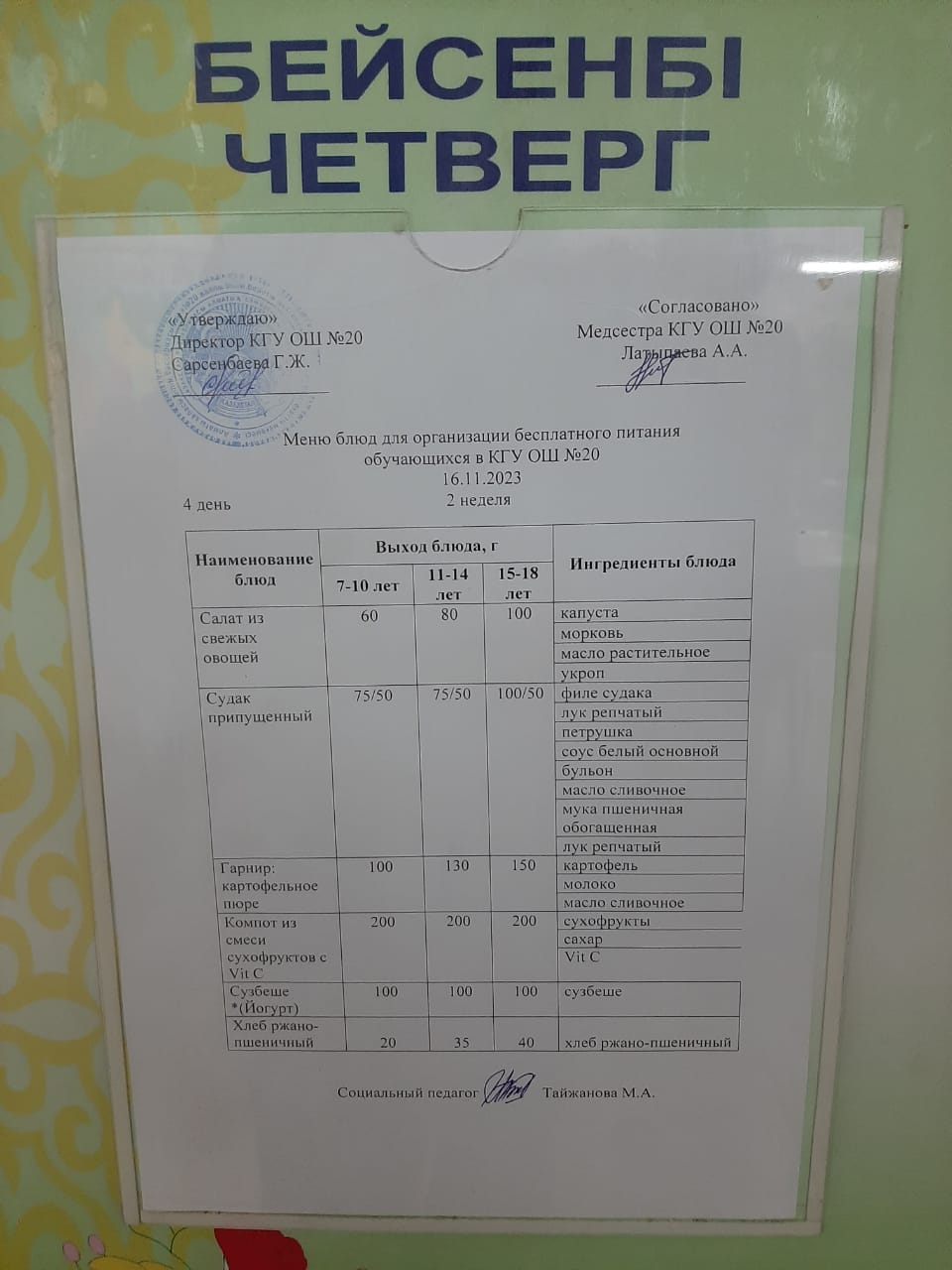 2023-2024 оқу жылы 1-4 сынып және СУСН 5-11 сыныптар мәзірі. Меню 1-4 класс, СУСН 5-11 класс 2023-2024 учебный год