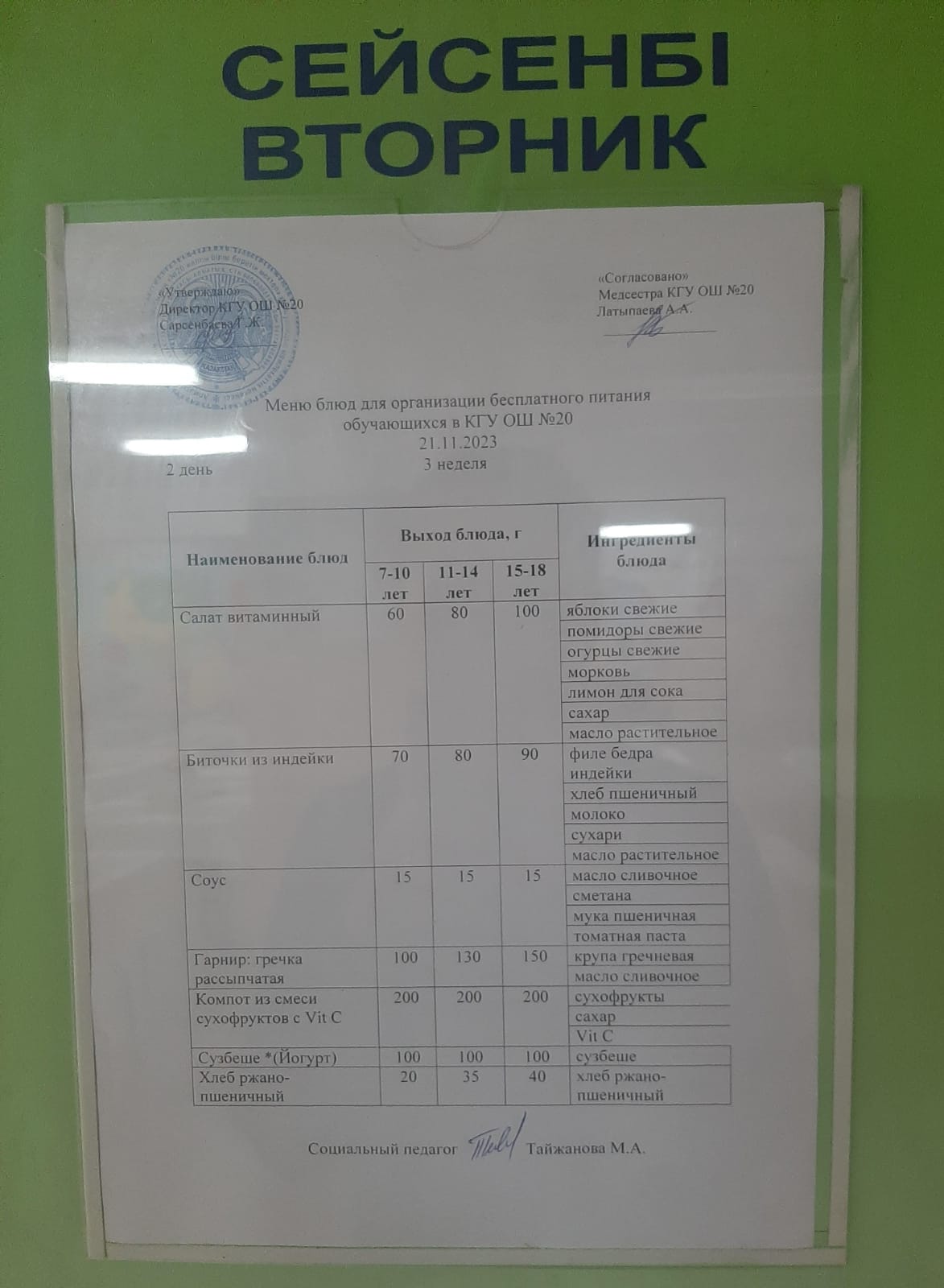 2023-2024 оқу жылы 1-4 сынып және СУСН 5-11 сыныптар мәзірі. Меню 1-4 класс, СУСН 5-11 класс 2023-2024 учебный год