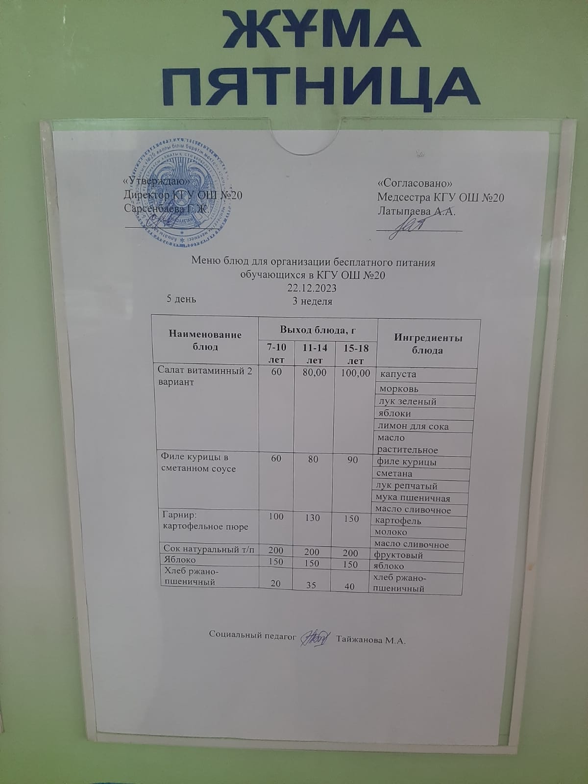2023-2024 оқу жылы 1-4 сынып және СУСН 5-11 сыныптар мәзірі. Меню 1-4 класс, СУСН 5-11 класс 2023-2024 учебный год