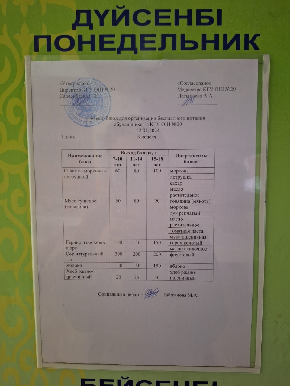 2023-2024 оқу жылы 1-4 сынып және СУСН 5-11 сыныптар мәзірі. Меню 1-4 класс, СУСН 5-11 класс 2023-2024 учебный год