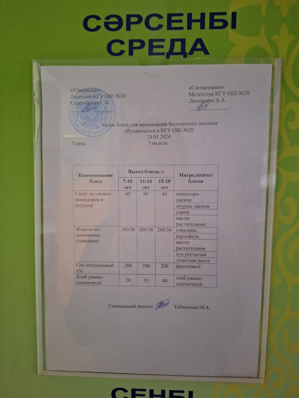 2023-2024 оқу жылы 1-4 сынып және СУСН 5-11 сыныптар мәзірі. Меню 1-4 класс, СУСН 5-11 класс 2023-2024 учебный год