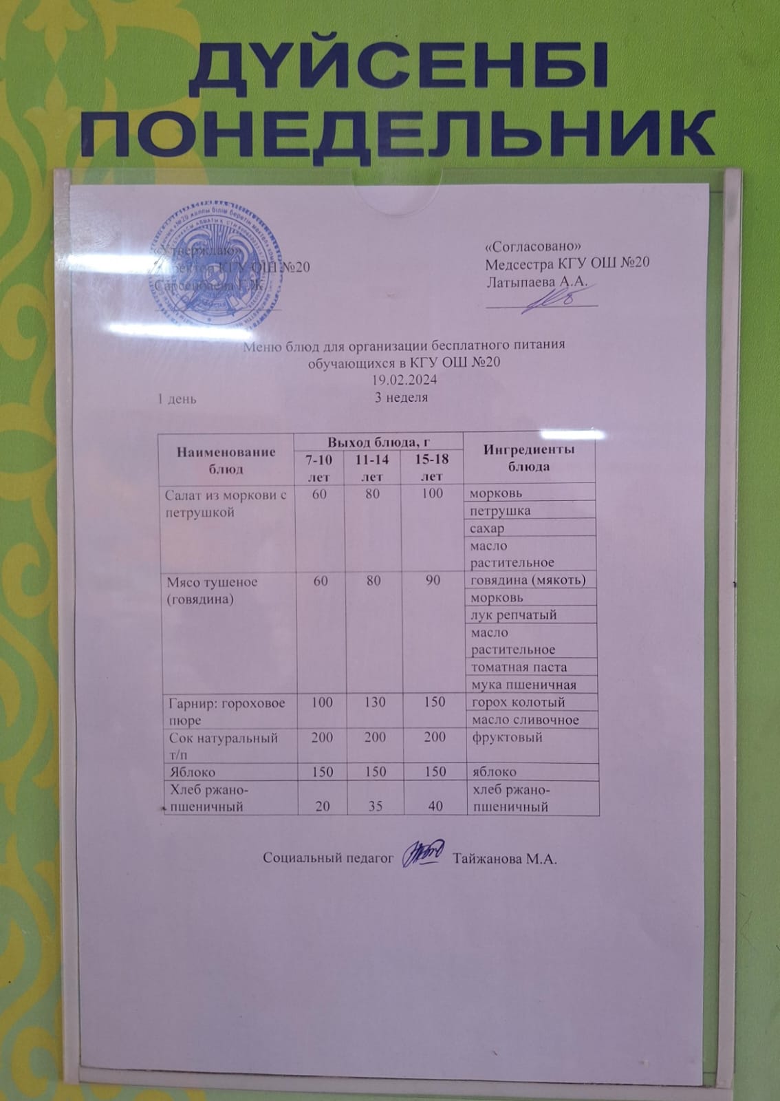 2023-2024 оқу жылы 1-4 сынып және СУСН 5-11 сыныптар мәзірі. Меню 1-4 класс, СУСН 5-11 класс 2023-2024 учебный год