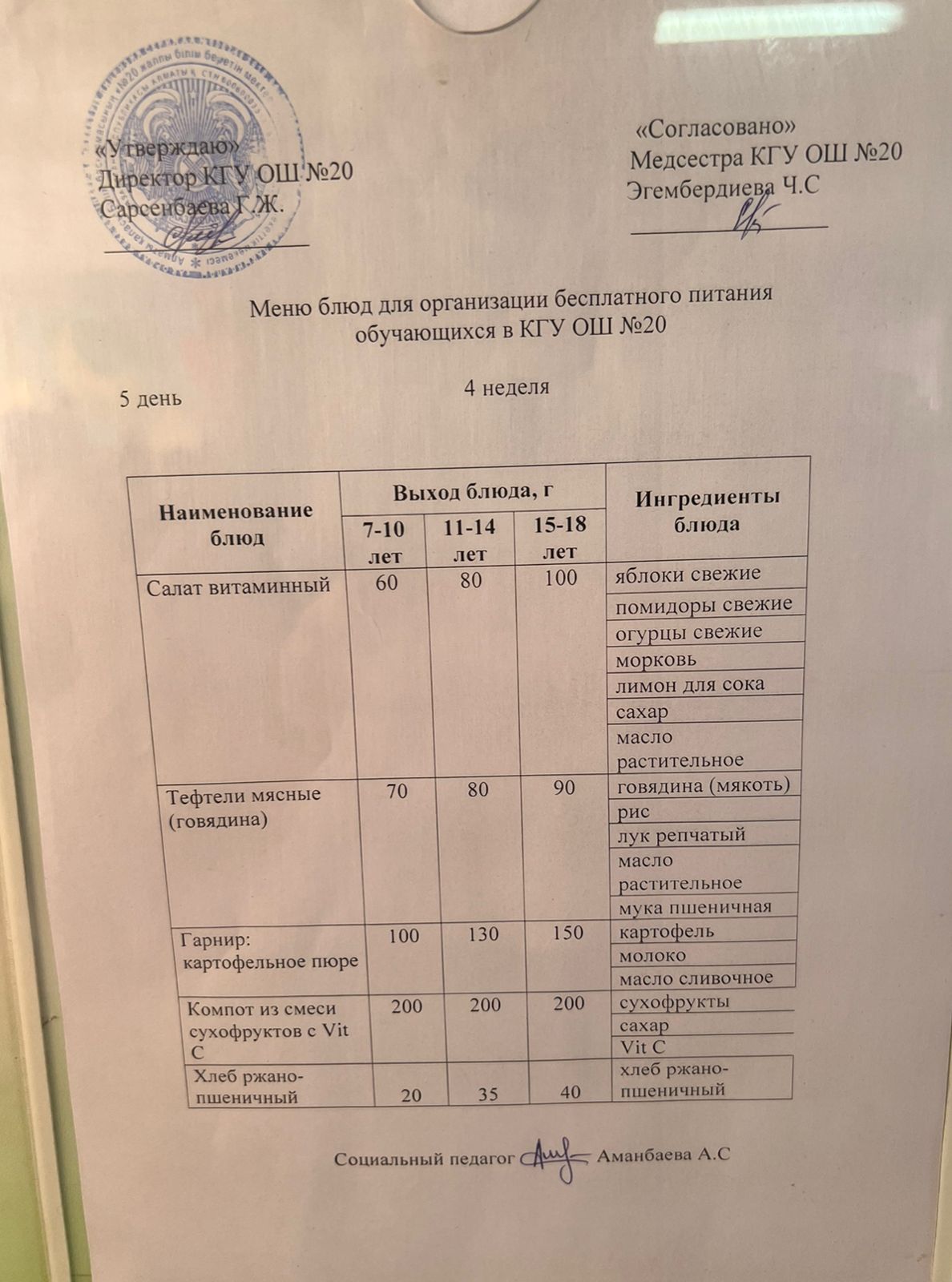 2023-2024 оқу жылы 1-4 сынып және СУСН 5-11 сыныптар мәзірі. Меню 1-4 класс, СУСН 5-11 класс 2023-2024 учебный год