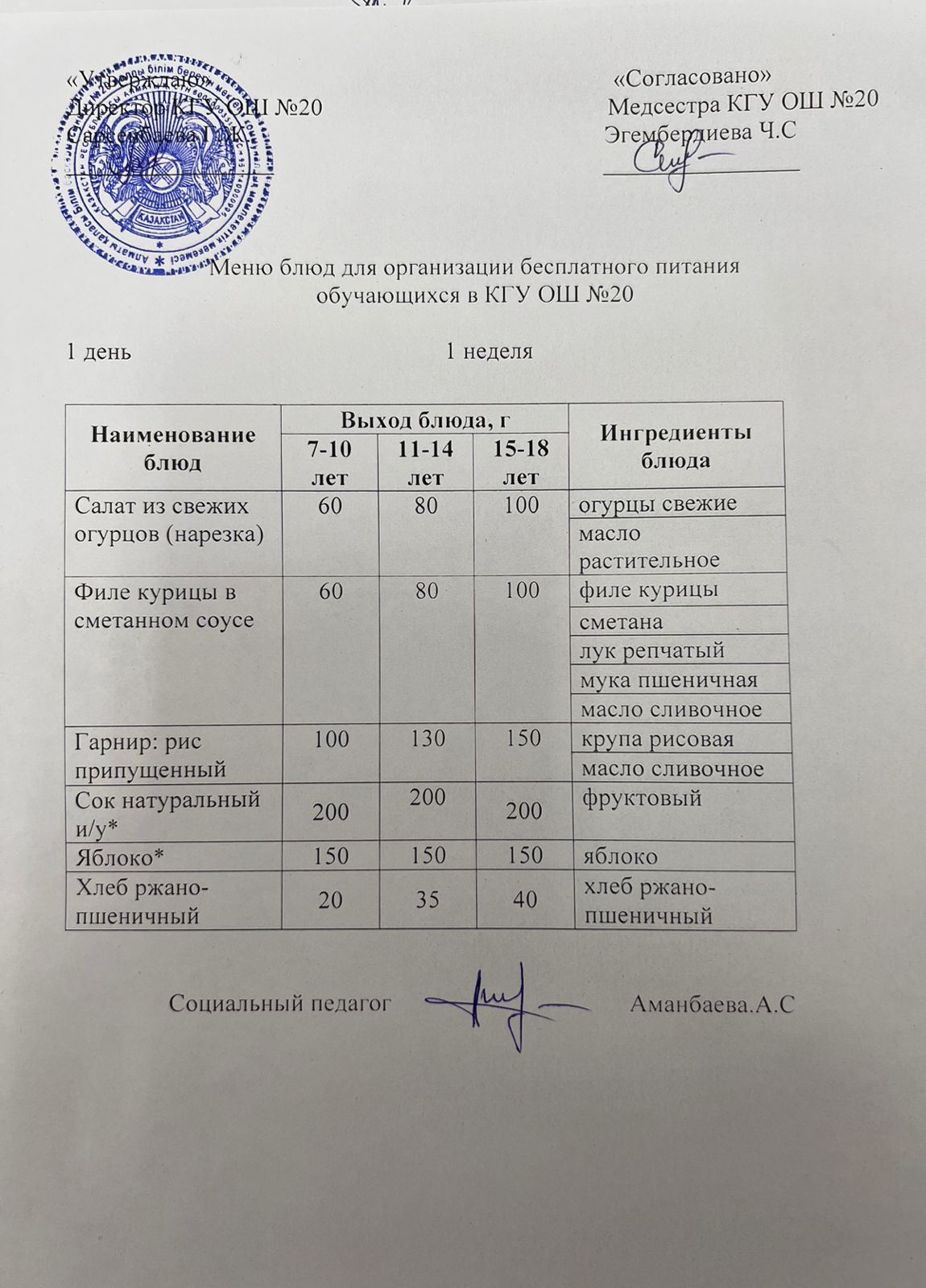 Тегін ас мәзірі 1-4. и СУСН 5-11.! Меню бесплатного питания 1-4кл. и СУСН 5-11кл.!