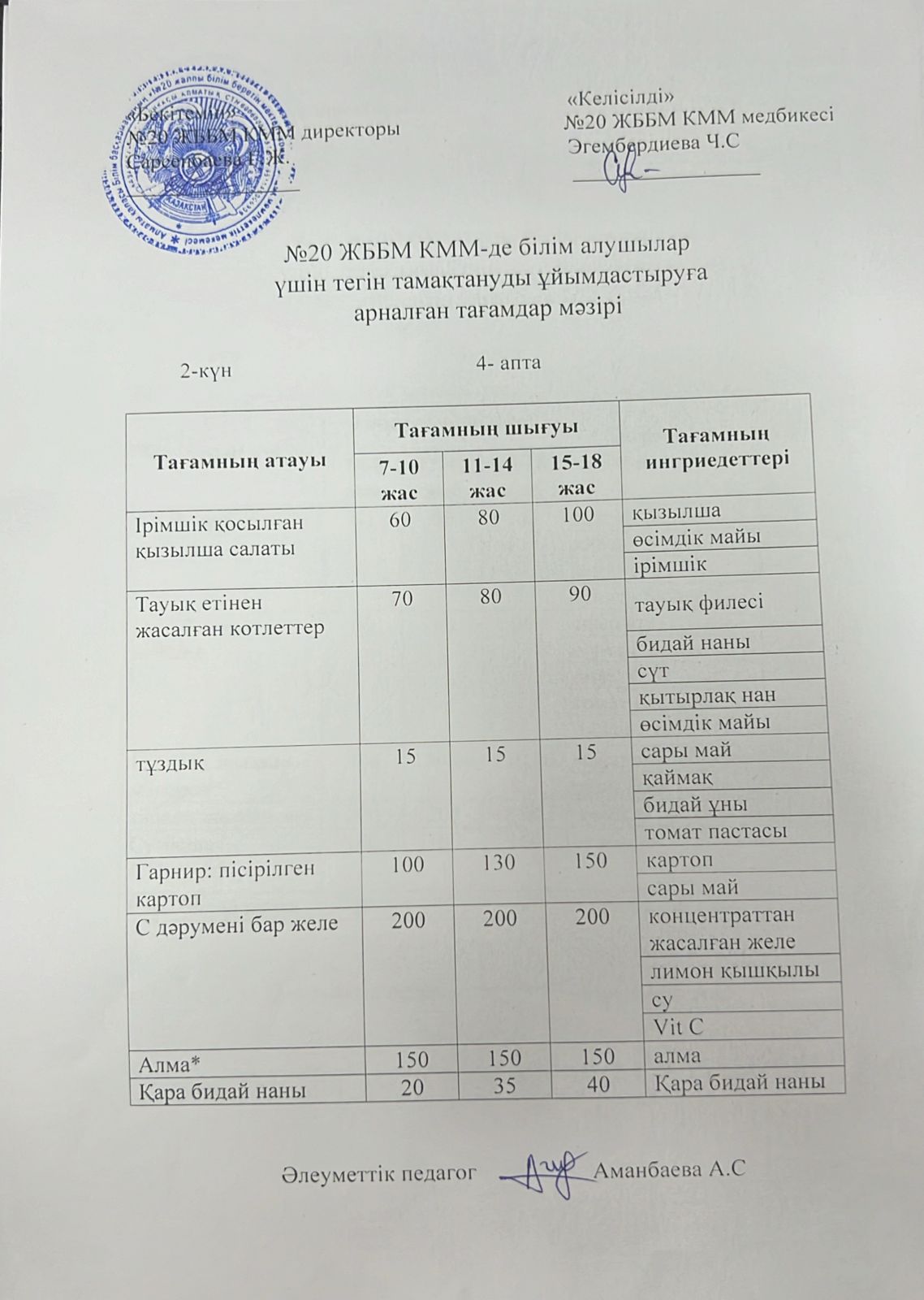 2023-2024 оқу жылы 1-4 сынып және СУСН 5-11 сыныптар мәзірі. Меню 1-4 класс, СУСН 5-11 класс 2023-2024 учебный год