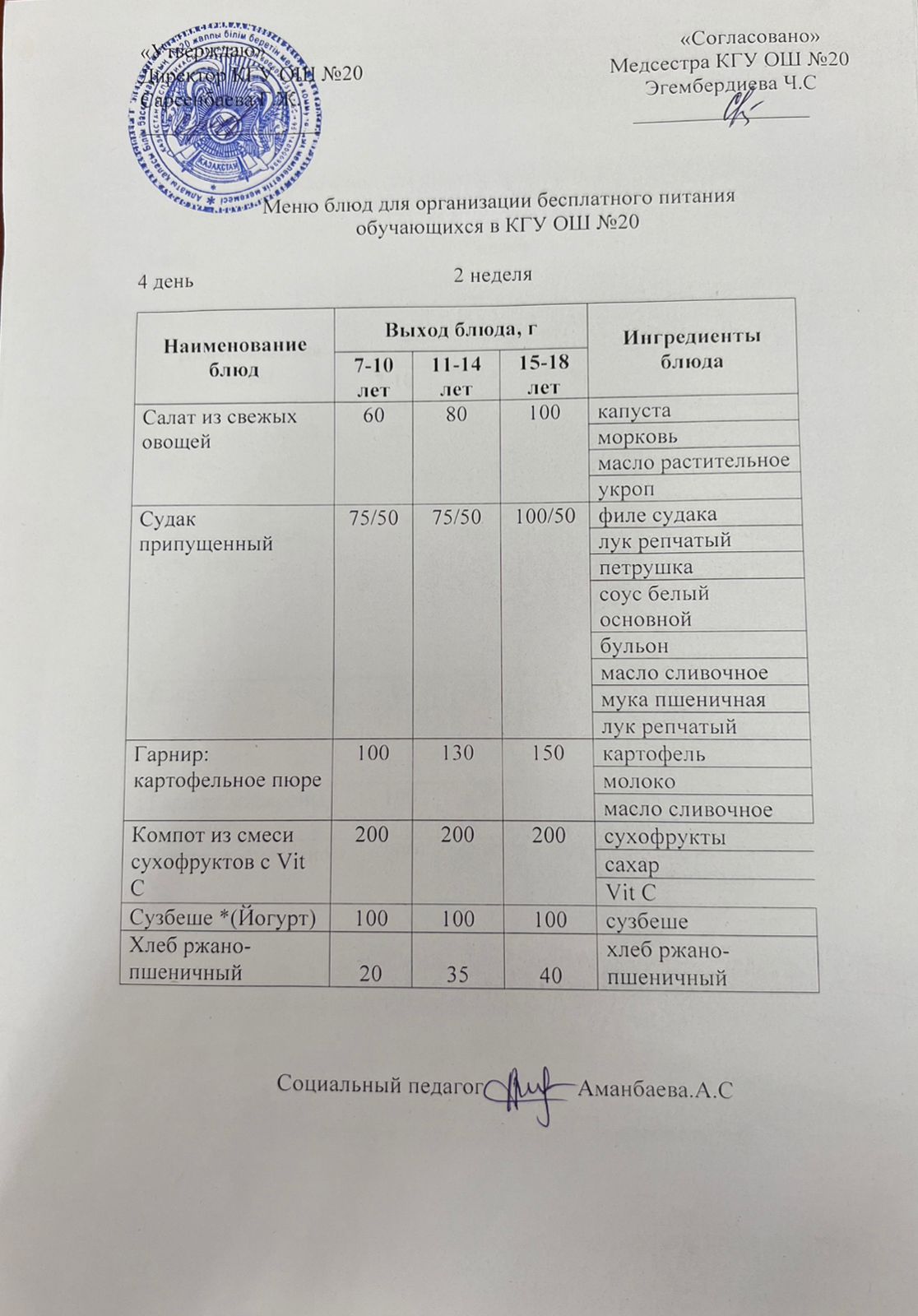 2023-2024 оқу жылы 1-4 сынып және СУСН 5-11 сыныптар мәзірі. Меню 1-4 класс, СУСН 5-11 класс 2023-2024 учебный год